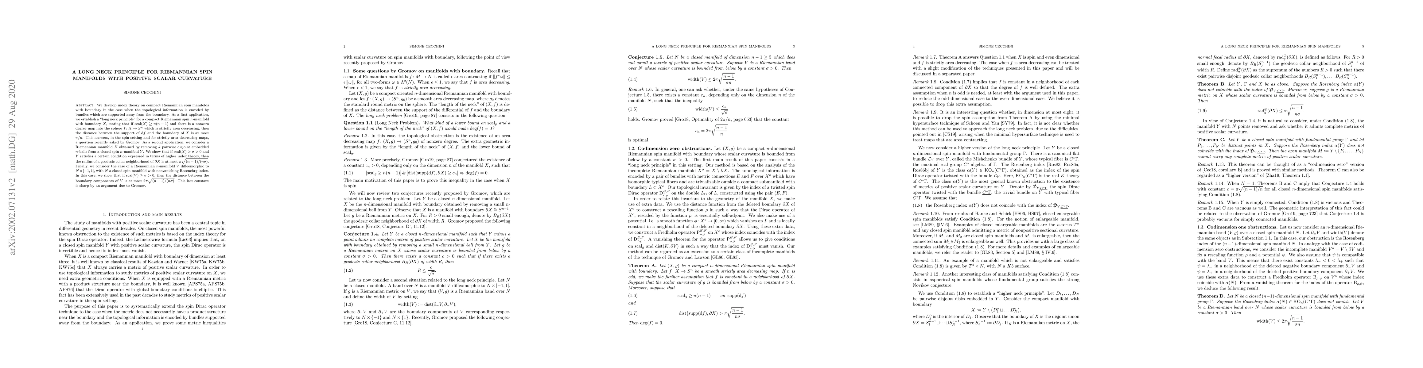 This paper develops index theory on Riemannian spin manifolds with positive scalar curvature and establishes a "long neck principle" for such manifolds under specific conditions. It shows that the distance between the support of a strictly area-decreasing map and the boundary is constrained by a function of the manifold's dimension and scalar curvature.