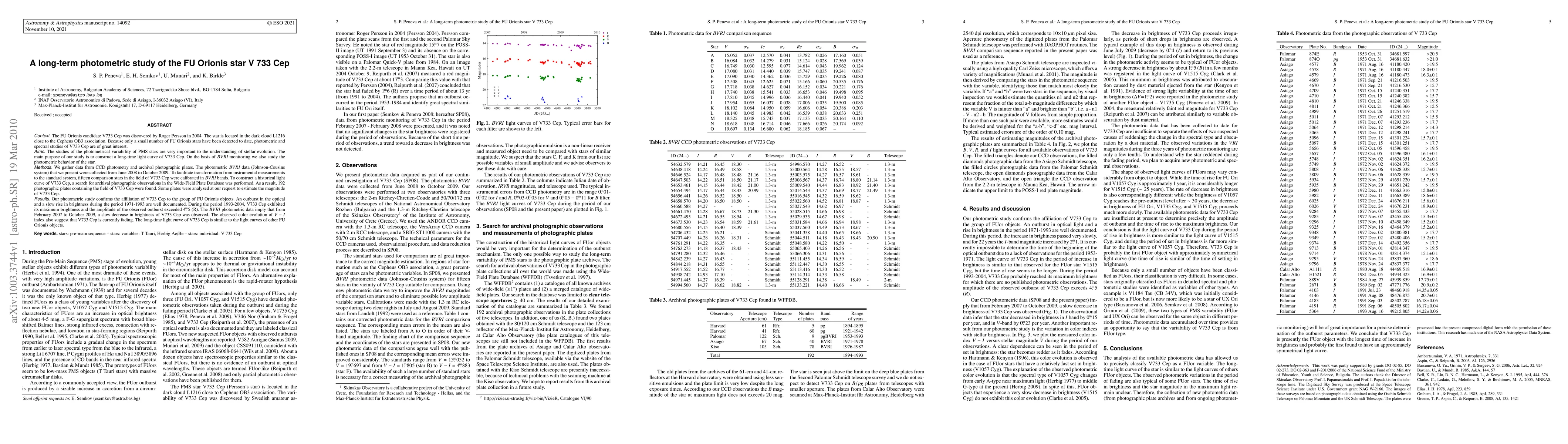 This study creates a long-term light curve of V733 Cep, a FU Orionis candidate star, using photometric data from 2008 to 2009, including archival photographic observations, to better understand its variability and evolution.