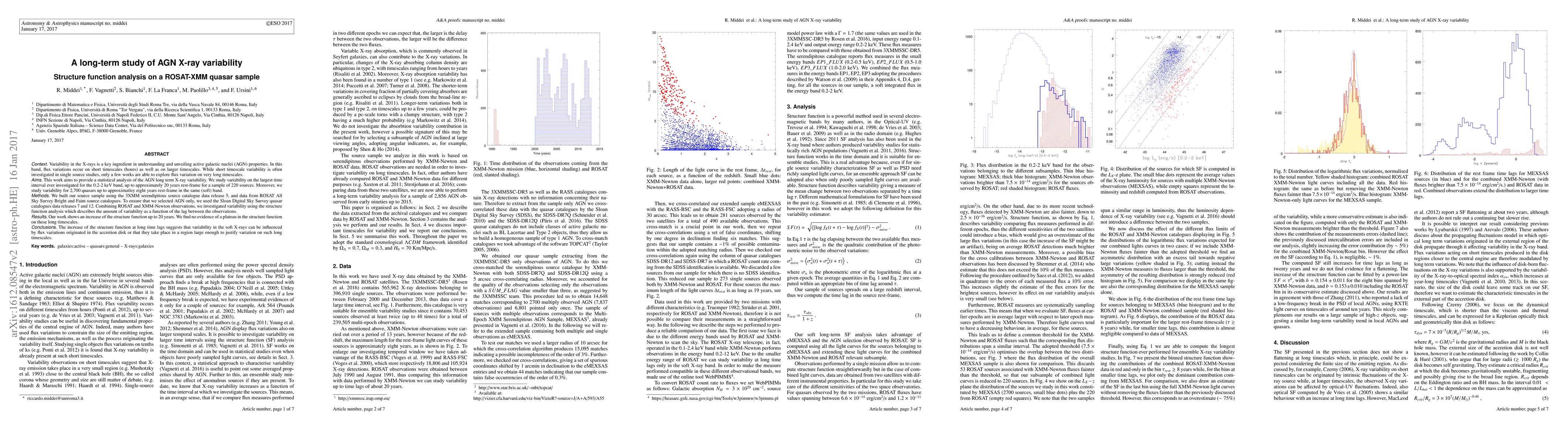 This study investigates long-term X-ray variability in a sample of 220 AGN and 2,700 quasars using structure function analysis on ROSAT and XMM-Newton data. The results show an increase in variability without a plateau over time scales up to 20 years, suggesting influences from accretion disk variations or large-scale regions.