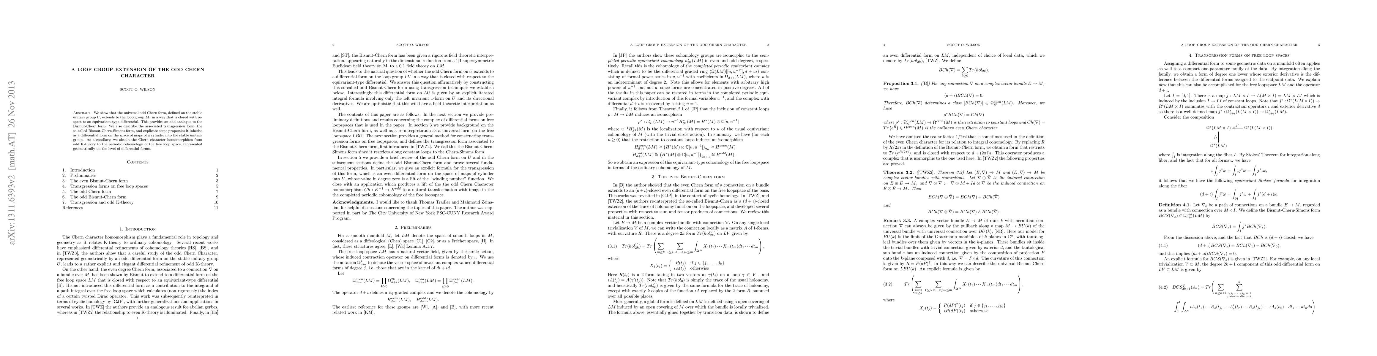 This paper extends the universal odd Chern form to the loop group $LU$ and introduces an equivariant-type differential, providing an odd analogue to the Bismut-Chern form. It also discusses the Bismut-Chern-Simons form and its properties, leading to a Chern character homomorphism from odd K-theory to periodic cohomology of the loop space.