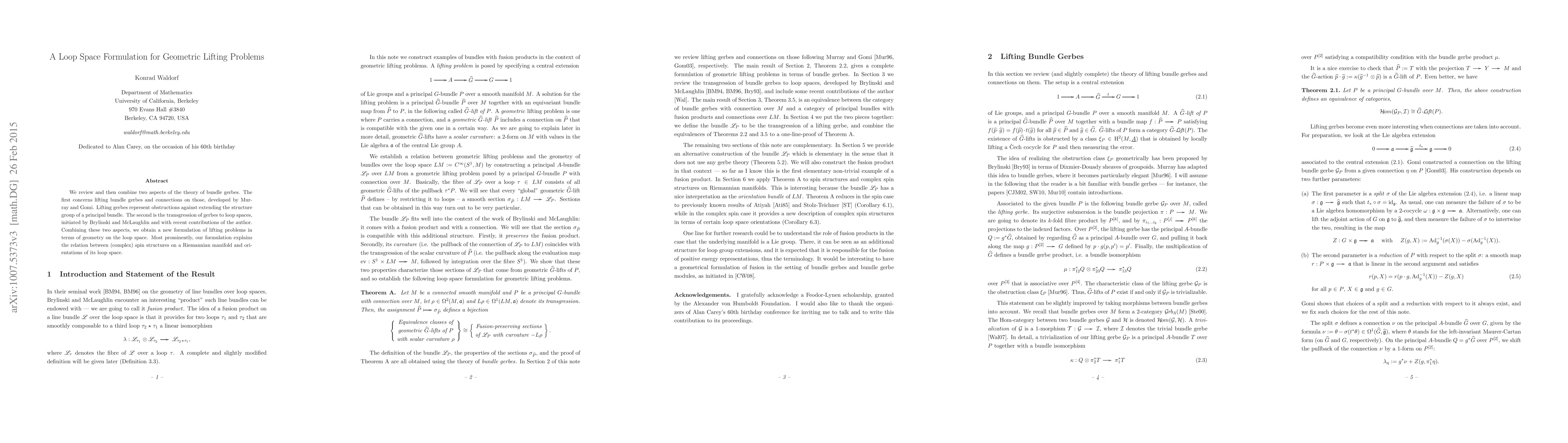 This paper combines Murray and Gomi's work on lifting bundle gerbes with the transgression of gerbes to loop spaces, providing a novel loop space formulation for geometric lifting problems. It notably elucidates the connection between complex spin structures on a Riemannian manifold and the orientations of its loop space.