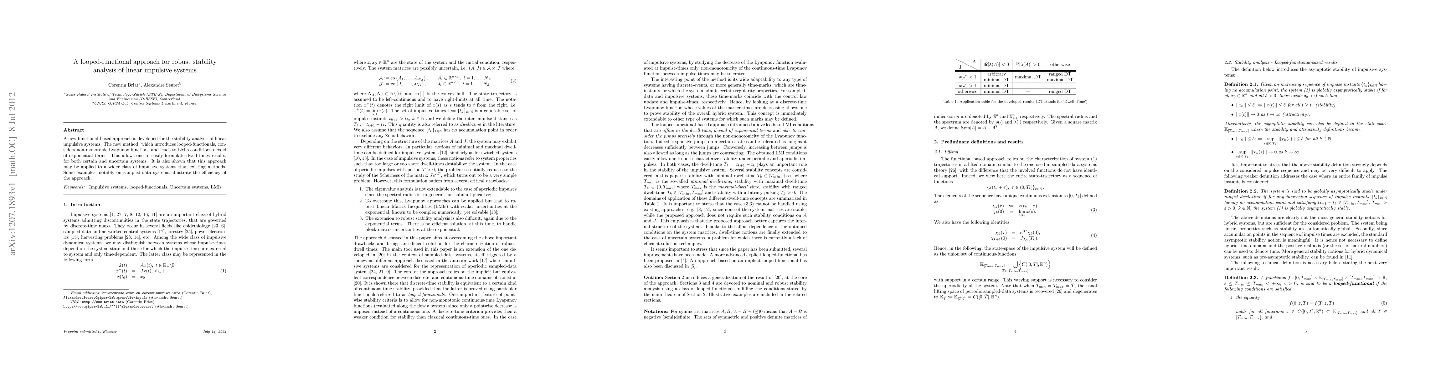 This paper introduces a looped-functional approach for robust stability analysis of linear impulsive systems, utilizing non-monotonic Lyapunov functions and LMIs without exponential terms. The method extends to a broader class of systems and demonstrates efficiency through examples on sampled-data systems.