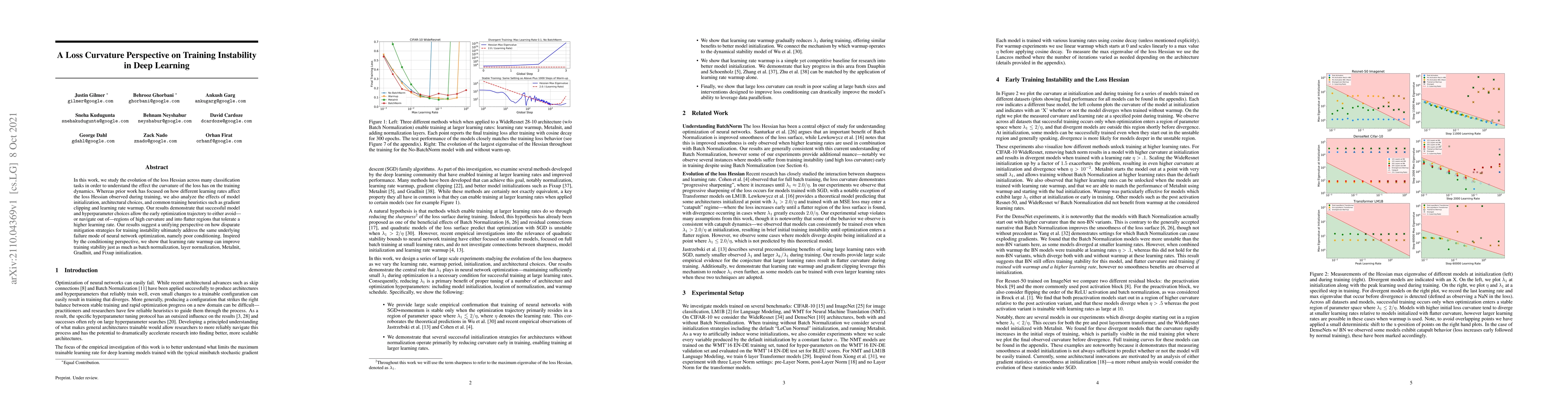 The paper introduces a loss curvature perspective on training instability, demonstrating that various mitigation strategies address the same underlying issue of poor conditioning in neural network optimization.