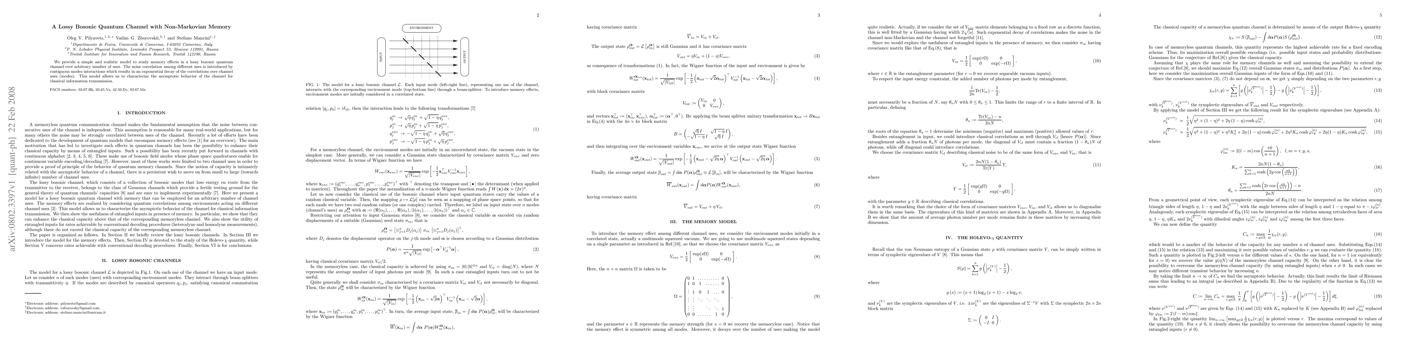 This paper presents a model for a lossy bosonic quantum channel that incorporates non-Markovian memory effects through contiguous mode interactions, demonstrating an exponential decay of noise correlations over channel uses. The study characterizes the channel's asymptotic behavior for classical information transmission.
