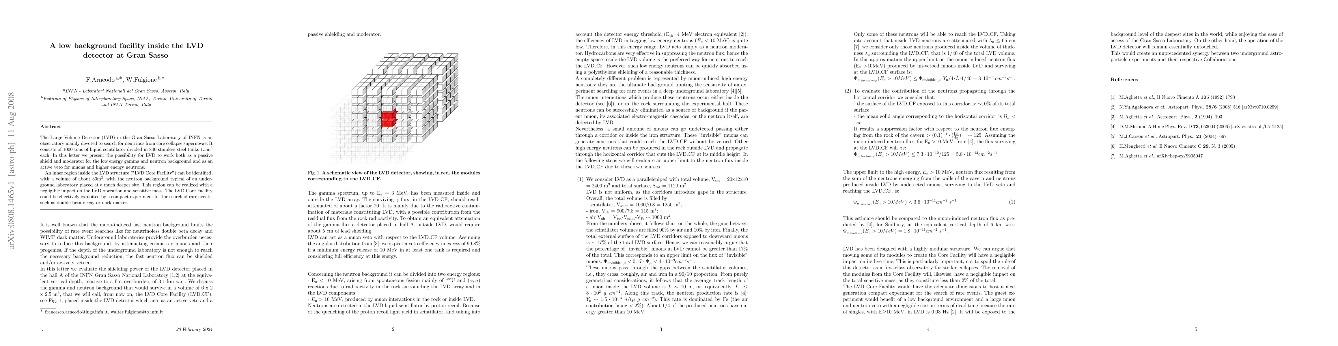 The Large Volume Detector (LVD) in Gran Sasso can function as a low background facility by creating an inner "LVD Core Facility" that mimics the neutron background of deeper underground sites, enabling rare event searches like double beta decay or dark matter detection. This setup requires minimal changes to the existing LVD structure.