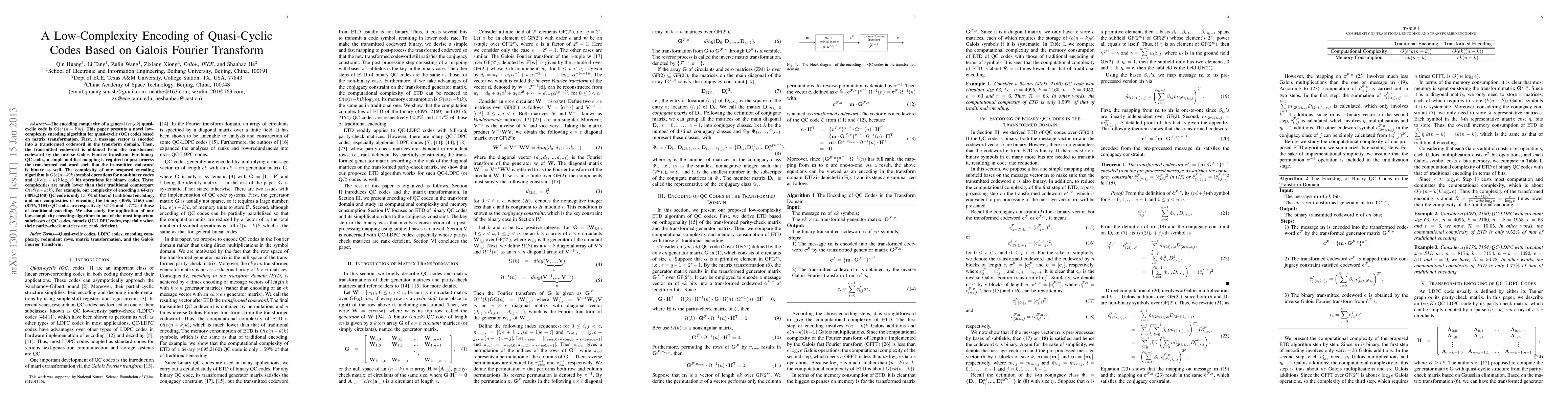 This paper proposes a novel low-complexity encoding algorithm for quasi-cyclic (QC) codes using matrix transformation and Galois Fourier transform, reducing encoding complexity from O[(e^2)(n-k)k] to O[e(n-k)k] for non-binary codes and O[ek(n-k)(log_2 e)] for binary codes, demonstrating significant efficiency improvements over traditional methods.