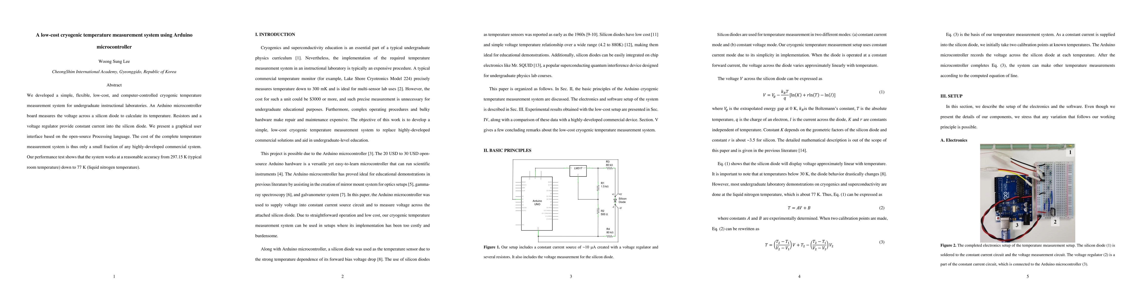 Researchers created a low-cost, computer-controlled cryogenic temperature measurement system using Arduino, achieving accurate readings from typical room temperature to liquid nitrogen levels.