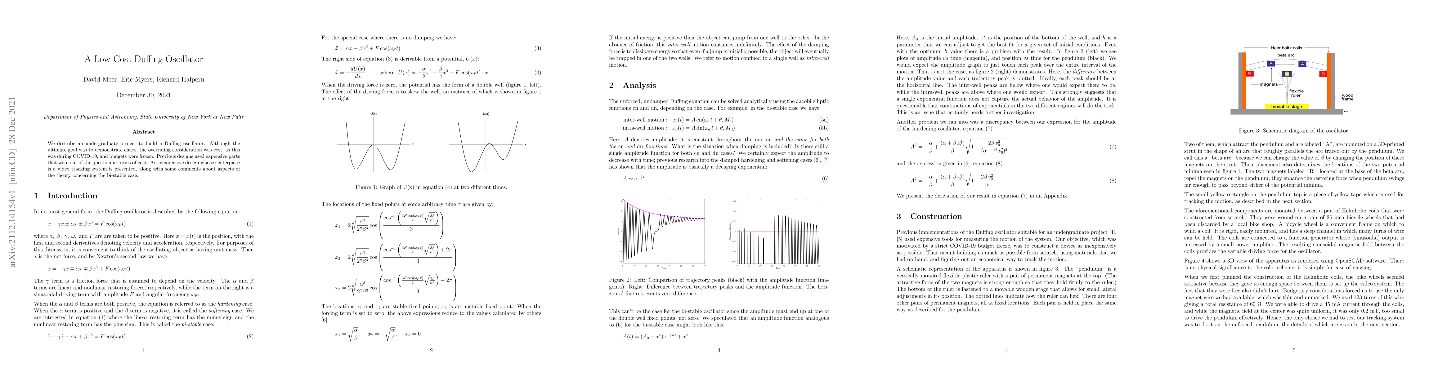 This research demonstrates a low-cost Duffing oscillator suitable for classroom demonstration and undergraduate research.