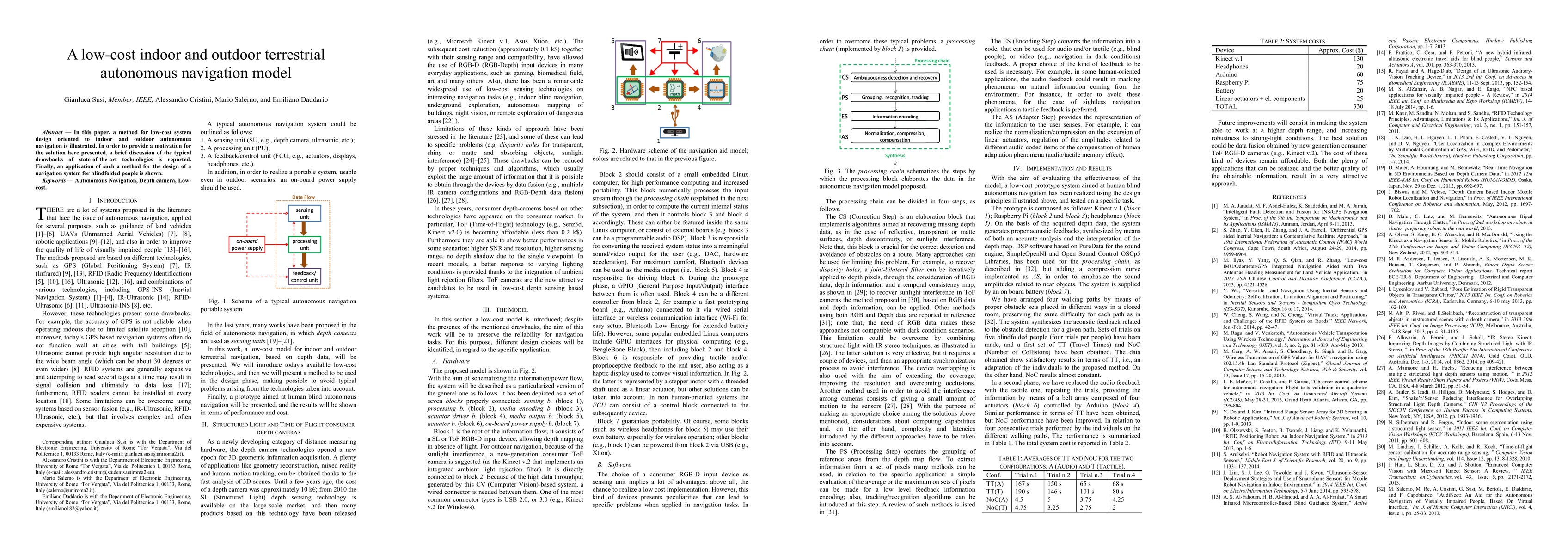 In this paper, a method for low-cost system design oriented to indoor and outdoor autonomous navigation is illustrated. In order to provide a motivation for the solution here presented, a brief discussion of the typical drawbacks of state-of-the-art technologies is reported. Finally, an application of such a method for the design of a navigation system for blindfolded people is shown.