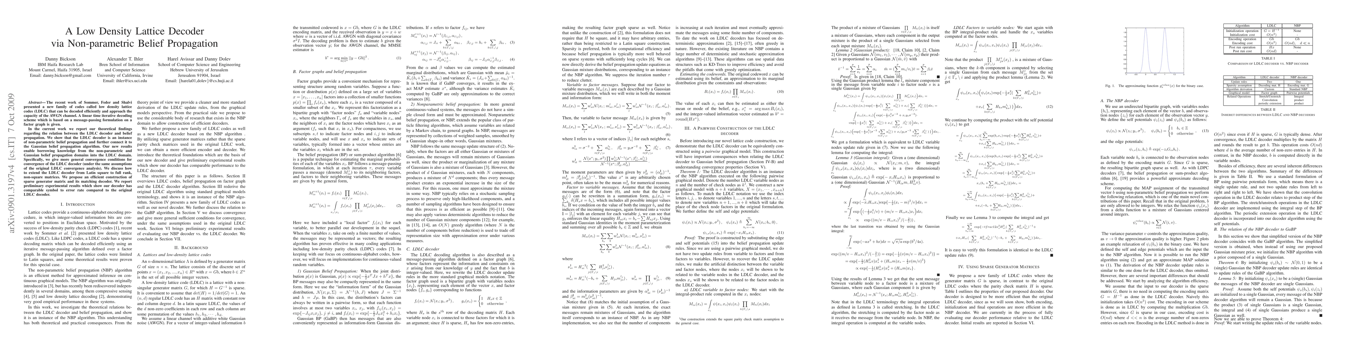 This paper explores the theoretical underpinnings of low density lattice codes (LDLC) decoders, showing they are instances of non-parametric belief propagation, and connects them to Gaussian belief propagation. It proposes an efficient construction of sparse generator matrices and discusses convergence conditions, with preliminary experiments indicating comparable performance to the original decoder.