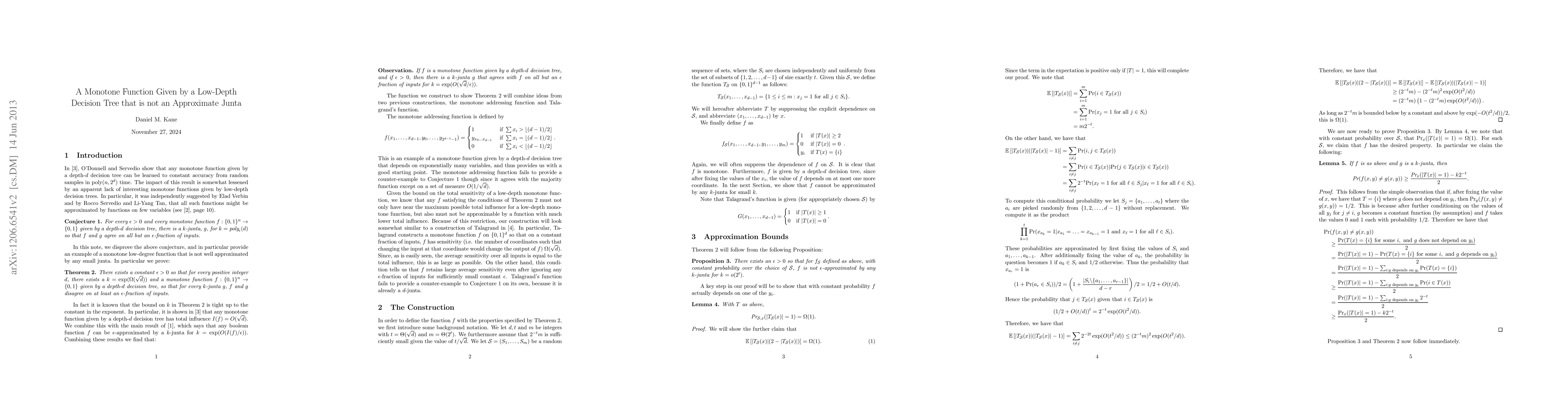 We provide an example of a monotone Boolean function on the hypercube given by a low depth decision tree that is not well approximated by any k-junta for small k.