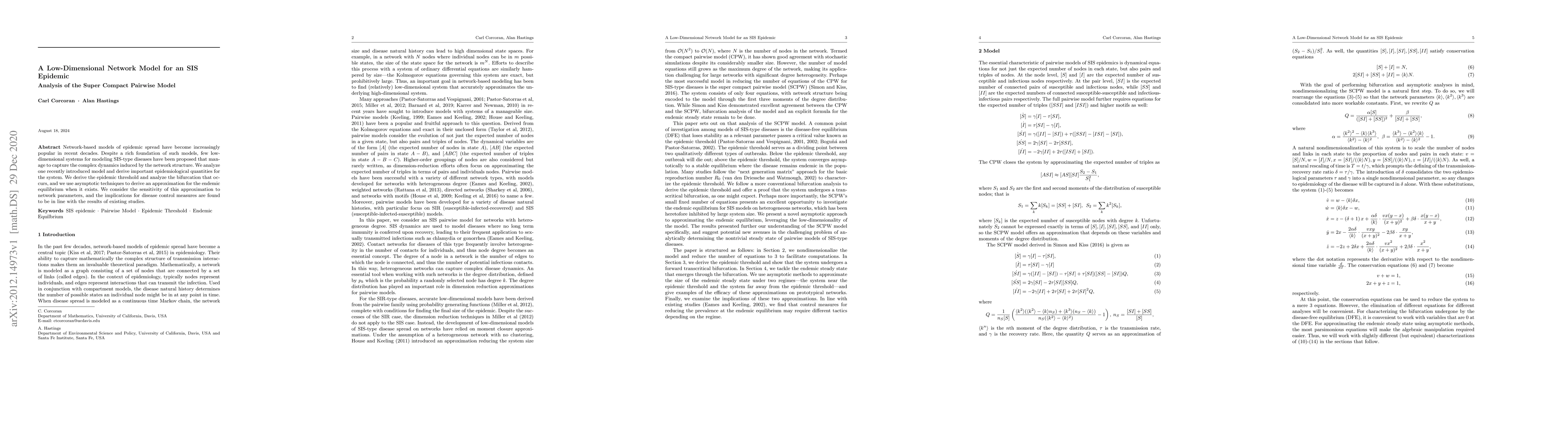 A new low-dimensional network model for SIS epidemics captures complex dynamics with ease, allowing for accurate modeling and disease control measures, and its findings align with existing studies.