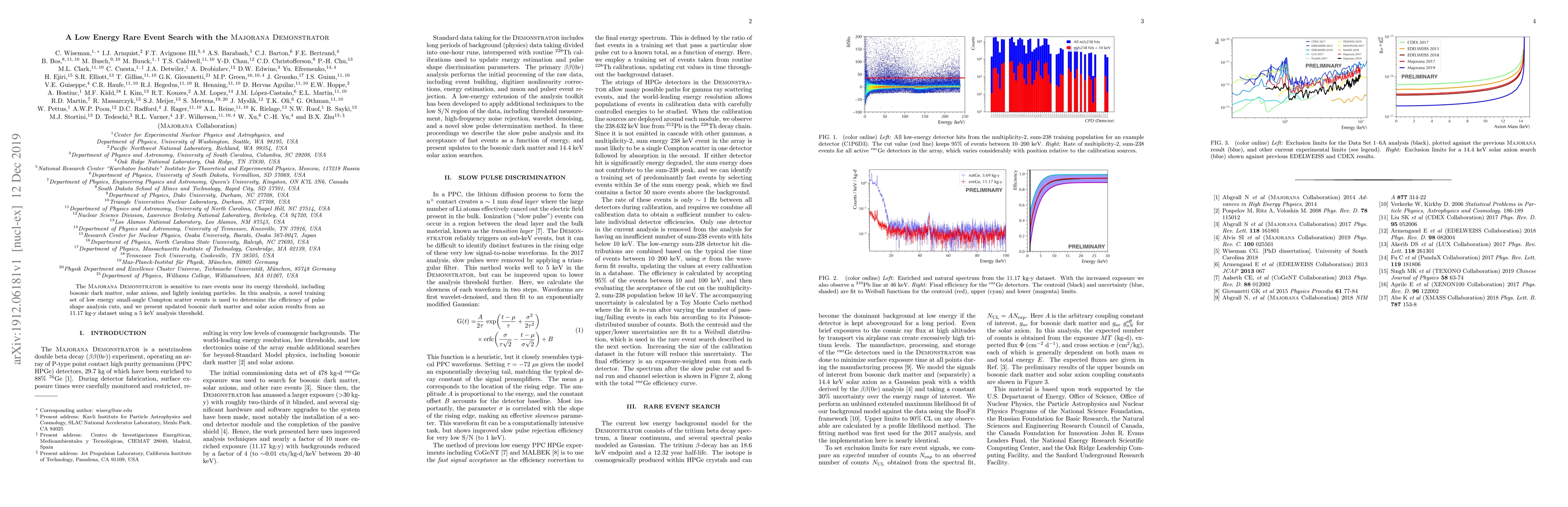 The MAJORANA DEMONSTRATOR is sensitive to rare events near its energy threshold, including bosonic dark matter, solar axions, and lightly ionizing particles. In this analysis, a novel training set of low energy small-angle Compton scatter events is used to determine the efficiency of pulse shape analysis cuts, and we present updated bosonic dark matter and solar axion results from an 11.17 kg-y dataset using a 5 keV analysis threshold.
