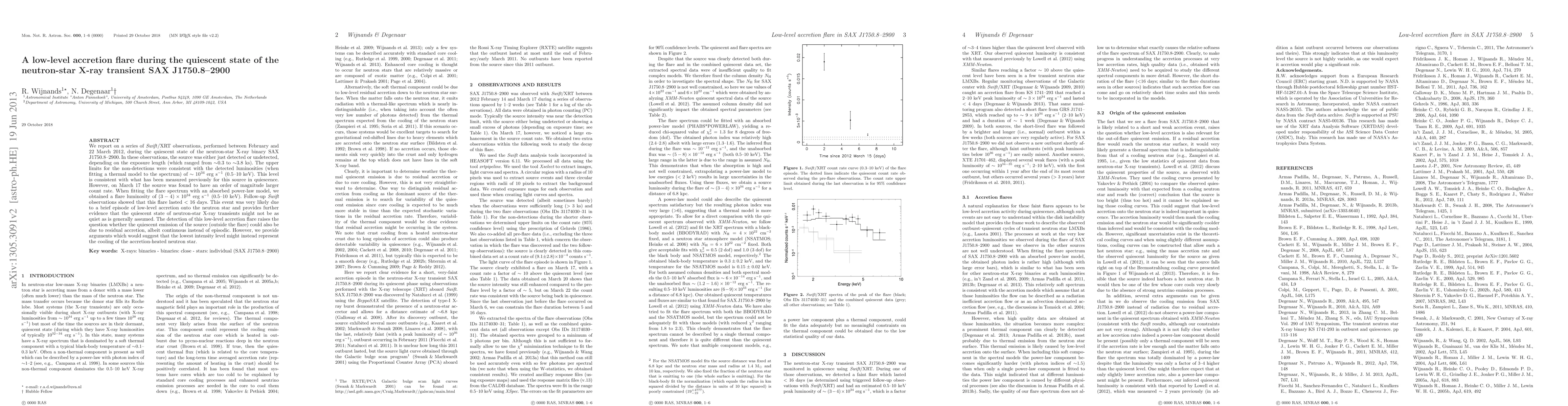 We report on a series of Swift/XRT observations, performed between February and 22 March 2012, during the quiescent state of the neutron-star X-ray binary SAX J1750.8-2900. In these observations, the source was either just detected or undetected, depending on the exposure length (which ranged from ~0.3 to ~3.8 ks). The upper limits for the non-detections were consistent with the detected luminosities (when fitting a thermal model to the spectrum) of ~1E34 erg/s (0.5-10 keV). This level is consistent with what has been measured previously for this source in quiescence. However, on March 17 the source was found to have an order of magnitude larger count rate. When fitting the flare spectrum with an absorbed power-law model, we obtained a flare luminosity of (3-4) 1E34 erg/s (0.5-10 keV). Follow-up Swift observations showed that this flare lasted <16 days. This event was very likely due to a brief episode of low-level accretion onto the neutron star and provides further evidence that the quiescent state of neutron-star X-ray transients might not be as quiet as is generally assumed. The detection of this low-level accretion flare raises the question whether the quiescent emission of the source (outside the flare) could also be due to residual accretion, albeit continuous instead of episodic. However, we provide arguments which would suggest that the lowest intensity level might instead represent the cooling of the accretion-heated neutron star.