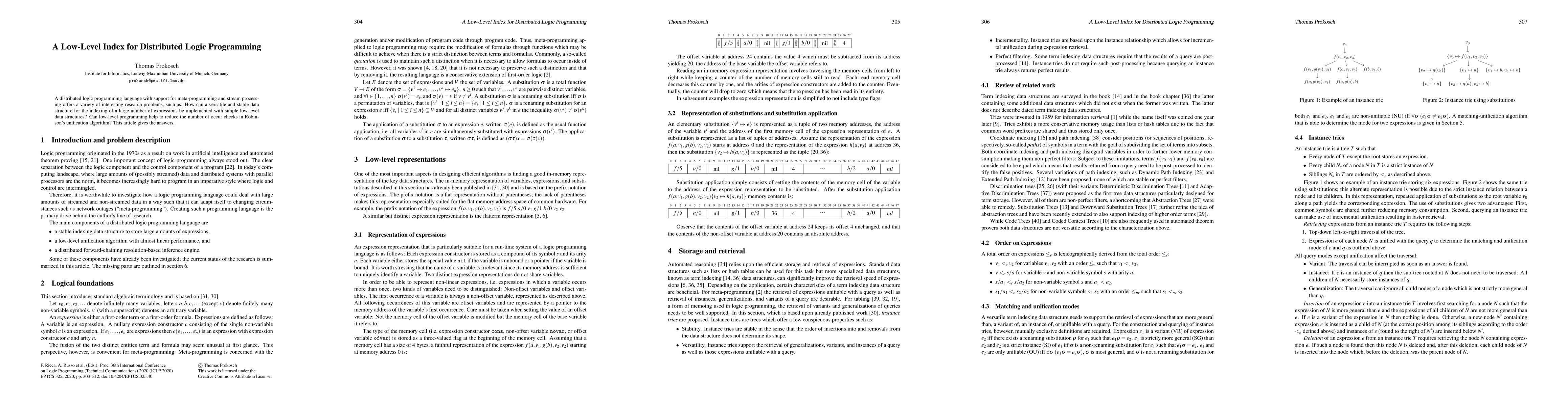 A distributed logic programming language with support for meta-programming and stream processing offers a variety of interesting research problems, such as: How can a versatile and stable data structure for the indexing of a large number of expressions be implemented with simple low-level data structures? Can low-level programming help to reduce the number of occur checks in Robinson's unification algorithm? This article gives the answers.