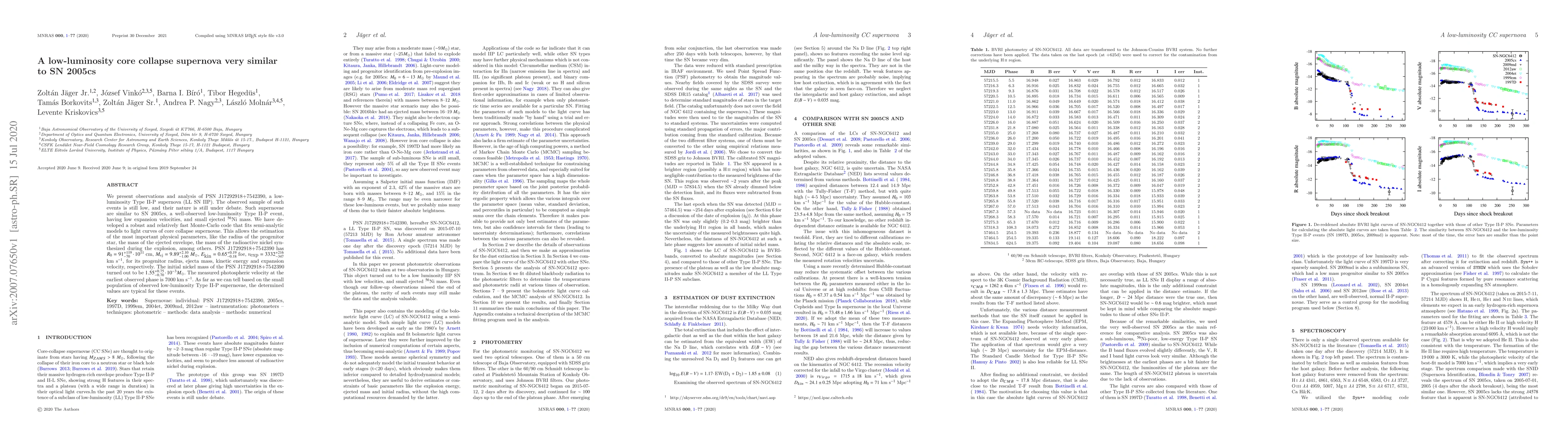 Researchers analyzed a low-luminosity Type II-P supernova, PSN J17292918+7542390, finding values consistent with previously observed low-luminosity events like SN 2005cs, providing insight into these rare and poorly understood supernovae types.