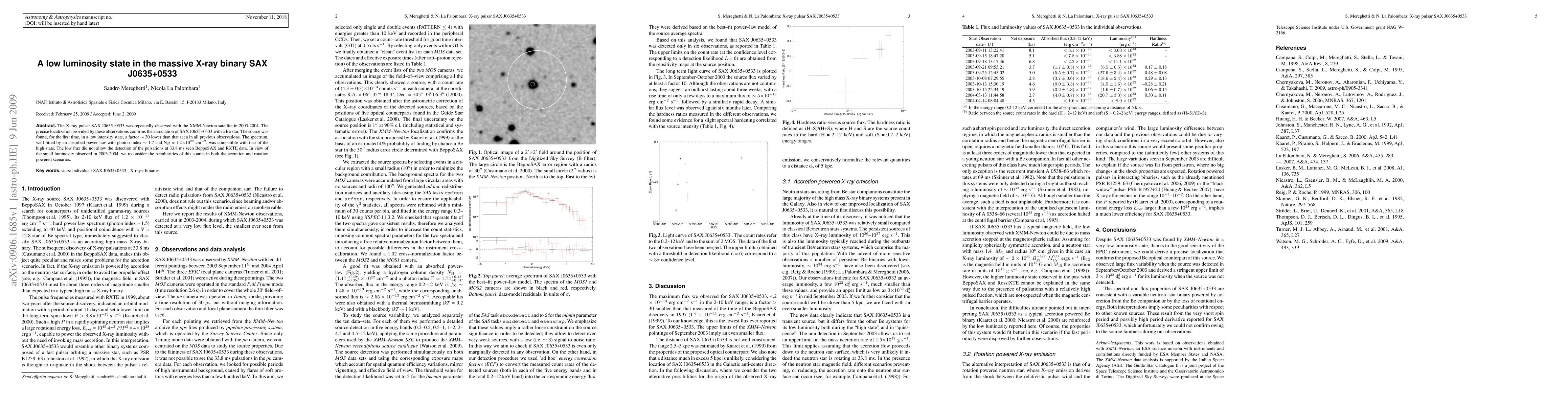 The X-ray pulsar SAX J0635+0533 was repeatedly observed with the XMM-Newton satellite in 2003-2004. The precise localization provided by these observations confirms the association of SAX J0635+0533 with a Be star. The source was found, for the first time, in a low intensity state, a factor ~30 lower than that seen in all previous observations. The spectrum, well fitted by an absorbed power law with photon index ~1.7 and N_H = 1.2x10^22 cm^-2, was compatible with that of the high state. The low flux did not allow the detection of the pulsations at 33.8 ms seen BeppoSAX and RXTE data. In view of the small luminosity observed in 2003-2004, we reconsider the peculiarities of this source in both the accretion and rotation powered scenarios.