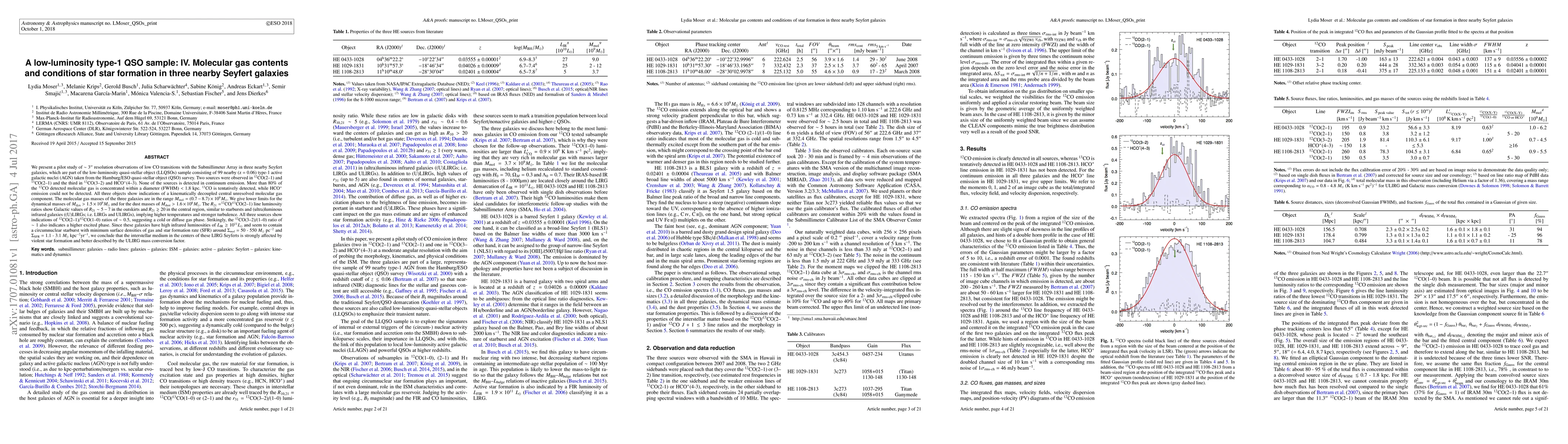 Scientists studied three nearby Seyfert galaxies with low-luminosity quasars, finding that they have high amounts of molecular gas and strong star formation, similar to ULIRGs and ULIRGs, which suggests violent interactions between the galaxy's interstellar medium and starbursts.