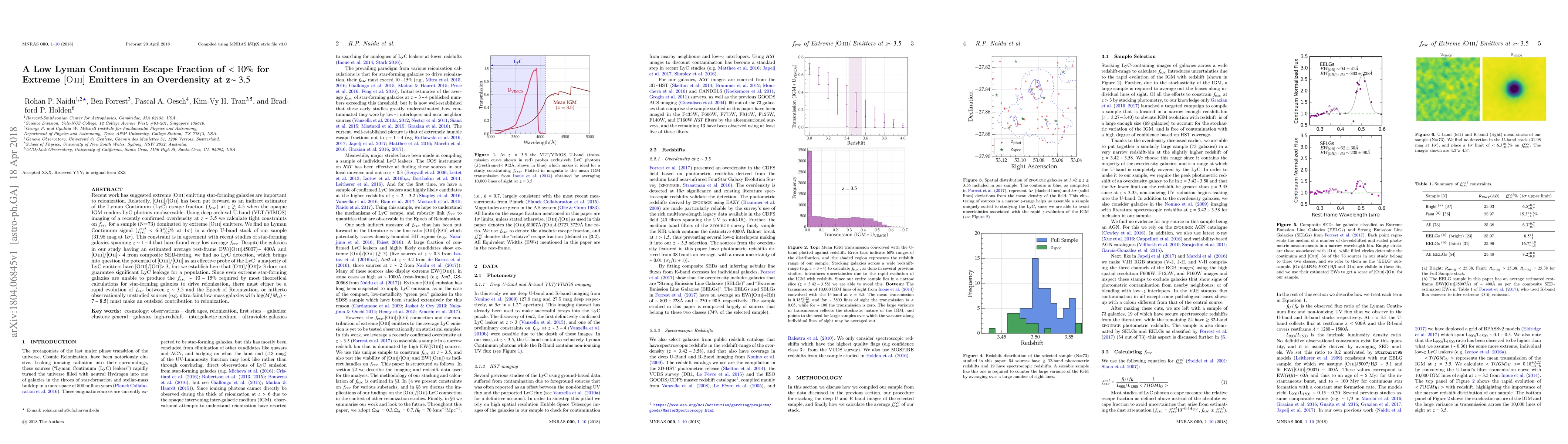 Recent work has suggested extreme [OIII] emitting star-forming galaxies are important to reionization. Relatedly, [OIII]/[OII] has been put forward as an indirect estimator of the Lyman Continuum (LyC) escape fraction ($f_{esc}$) at $z\gtrsim4.5$ when the opaque IGM renders LyC photons unobservable. Using deep archival U-band (VLT/VIMOS) imaging of a recently confirmed overdensity at $z\sim3.5$ we calculate tight constraints on $f_{esc}$ for a sample (N=73) dominated by extreme [OIII] emitters. We find no Lyman Continuum signal ($f_{esc}^{rel} < 6.3^{+0.7}_{-0.7} \%$ at $1\sigma$) in a deep U-band stack of our sample (31.98 mag at 1$\sigma$). This constraint is in agreement with recent studies of star-forming galaxies spanning $z\sim1-4$ that have found very low average $f_{esc}$. Despite the galaxies in our study having an estimated average rest-frame EW([OIII]$\lambda5007$)$\sim400\AA$ and [OIII]/[OII]$\sim 4$ from composite SED-fitting, we find no LyC detection, which brings into question the potential of [OIII]/[OII] as an effective probe of the LyC--a majority of LyC emitters have [OIII]/[OII]$>3$, but we establish here that [OIII]/[OII]$>3$ does not guarantee significant LyC leakage for a population. Since even extreme star-forming galaxies are unable to produce the $f_{esc}\sim10-15\%$ required by most theoretical calculations for star-forming galaxies to drive reionization, there must either be a rapid evolution of $f_{esc}$ between $z\sim3.5$ and the Epoch of Reionization, or hitherto observationally unstudied sources (e.g. ultra-faint low-mass galaxies with $\log(M/M_\odot)\sim7-8.5$) must make an outsized contribution to reionization.