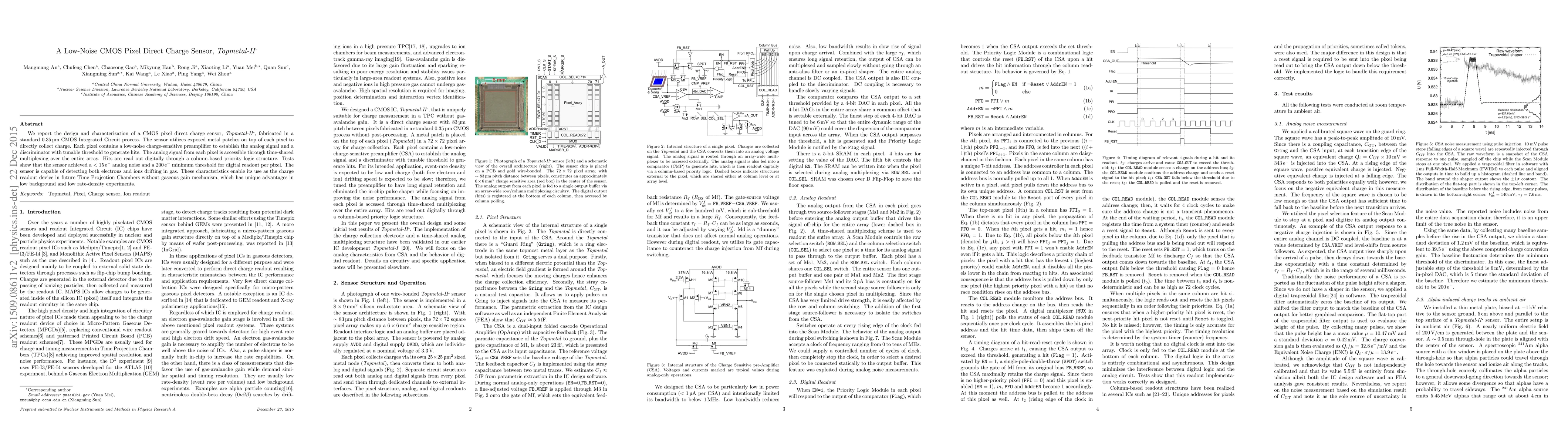 We report the design and characterization of a CMOS pixel direct charge sensor, Topmetal-II-, fabricated in a standard 0.35um CMOS Integrated Circuit process. The sensor utilizes exposed metal patches on top of each pixel to directly collect charge. Each pixel contains a low-noise charge-sensitive preamplifier to establish the analog signal and a discriminator with tunable threshold to generate hits. The analog signal from each pixel is accessible through time-shared multiplexing over the entire array. Hits are read out digitally through a column-based priority logic structure. Tests show that the sensor achieved a <15e- analog noise and a 200e- minimum threshold for digital readout per pixel. The sensor is capable of detecting both electrons and ions drifting in gas. These characteristics enable its use as the charge readout device in future Time Projection Chambers without gaseous gain mechanism, which has unique advantages in low background and low rate-density experiments.