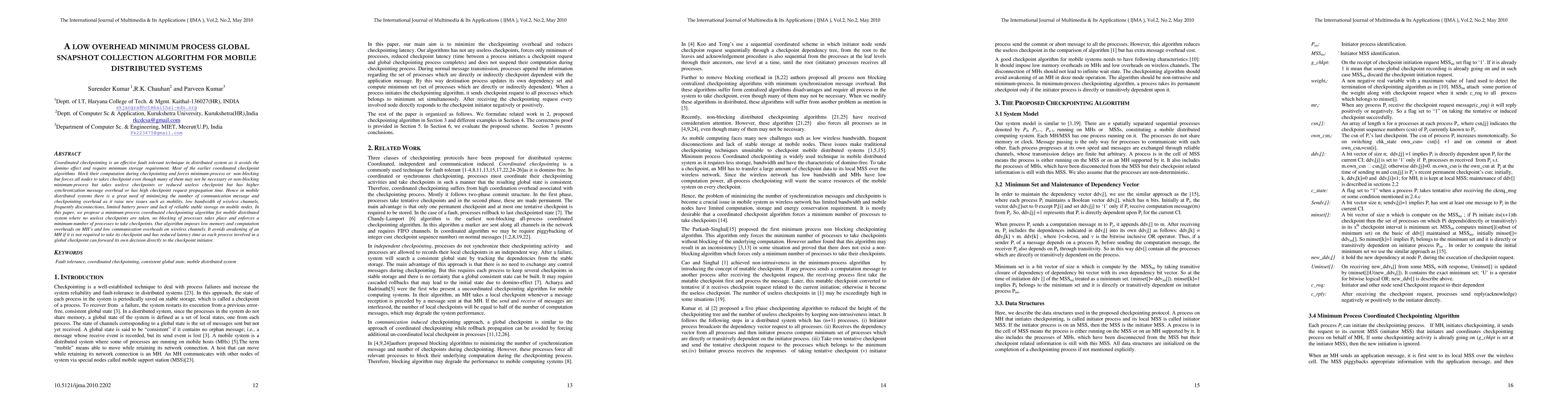 Coordinated checkpointing is an effective fault tolerant technique in distributed system as it avoids the domino effect and require minimum storage requirement. Most of the earlier coordinated checkpoint algorithms block their computation during checkpointing and forces minimum-process or non-blocking but forces all nodes to takes checkpoint even though many of them may not be necessary or non-blocking minimum-process but takes useless checkpoints or reduced useless checkpoint but has higher synchronization message overhead or has high checkpoint request propagation time. Hence in mobile distributed systems there is a great need of minimizing the number of communication message and checkpointing overhead as it raise new issues such as mobility, low bandwidth of wireless channels, frequently disconnections, limited battery power and lack of reliable stable storage on mobile nodes. In this paper, we propose a minimum-process coordinated checkpointing algorithm for mobile distributed system where no useless checkpoints are taken, no blocking of processes takes place and enforces a minimum-number of processes to take checkpoints. Our algorithm imposes low memory and computation overheads on MH's and low communication overheads on wireless channels. It avoids awakening of an MH if it is not required to take its checkpoint and has reduced latency time as each process involved in a global checkpoint can forward its own decision directly to the checkpoint initiator.