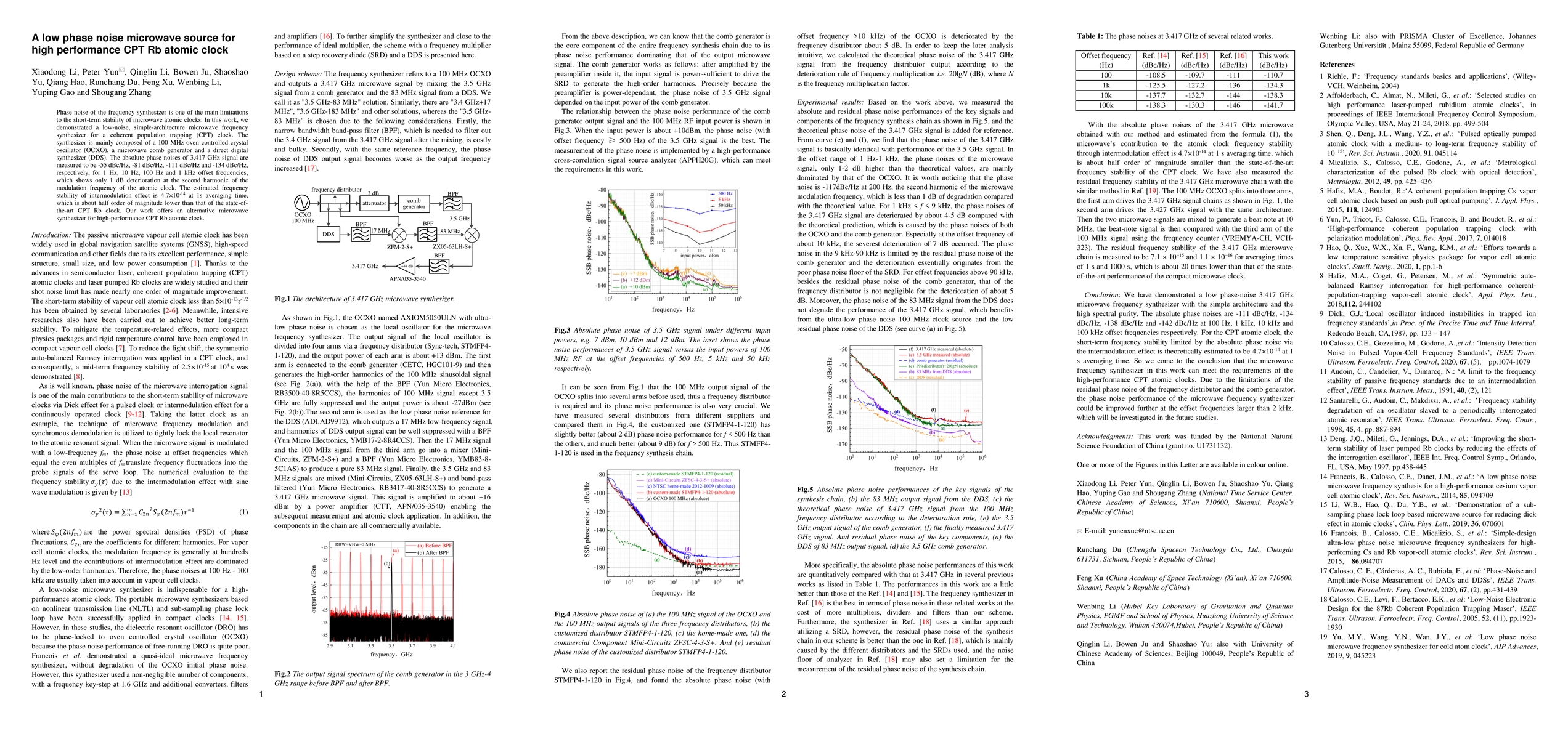 This paper presents a low-phase noise microwave frequency synthesizer for a high-performance CPT Rb atomic clock, achieving significant improvements in phase noise and stability over existing designs. The synthesizer uses an OCXO, microwave comb generator, and DDS, demonstrating phase noise levels that enhance the clock's short-term stability.