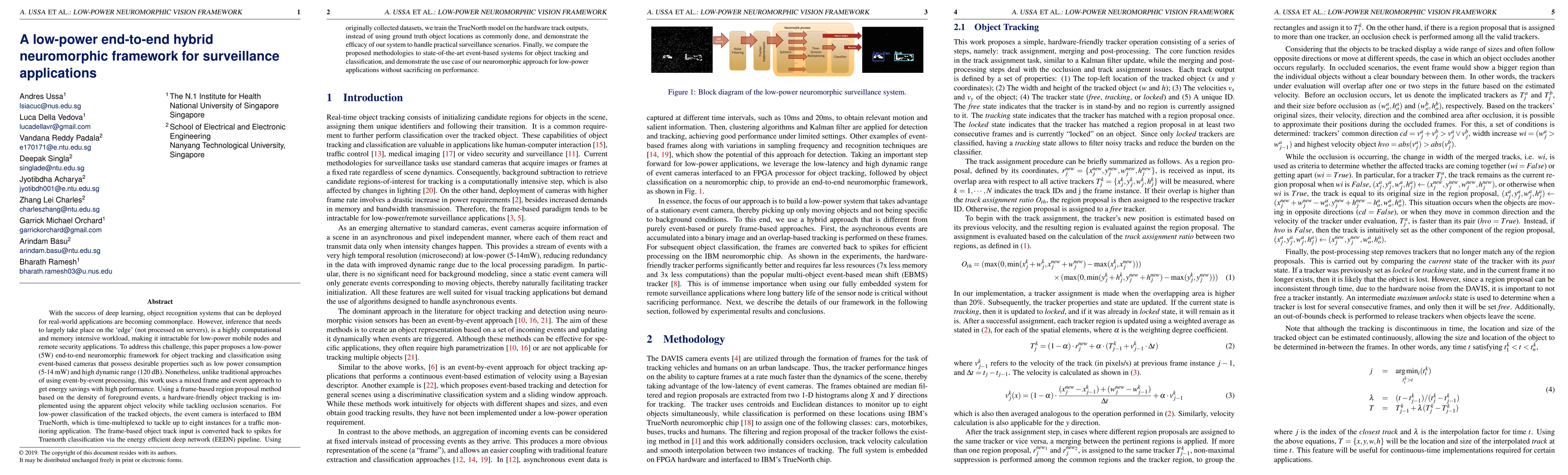 A low-power end-to-end hybrid neuromorphic framework for surveillance applications is proposed to address energy-intensive object recognition in real-world scenarios. The framework uses a mixed frame and event approach with IBM TrueNorth for efficient classification of tracked objects.