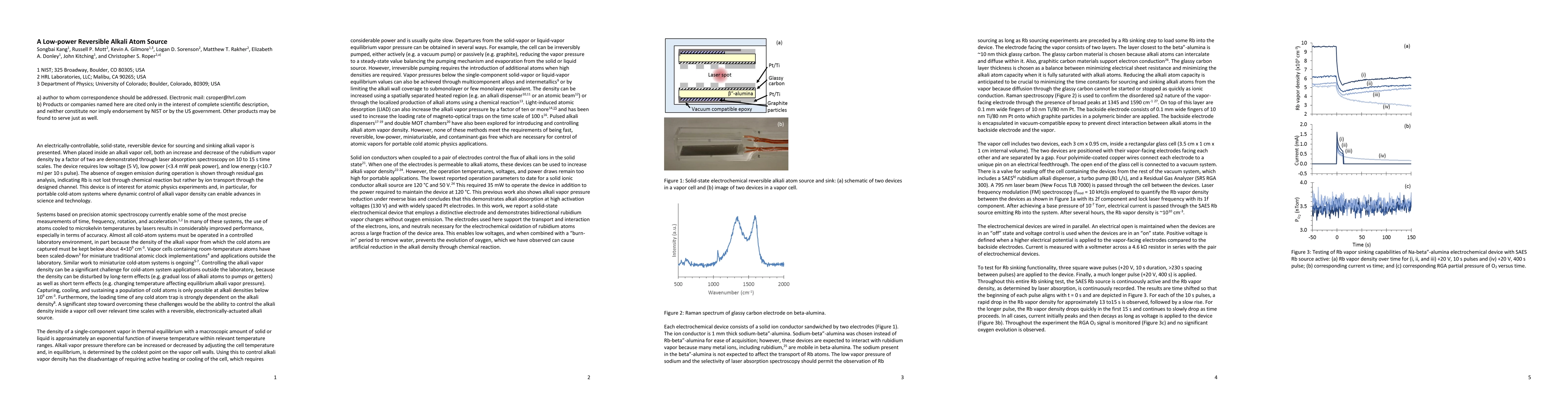 This paper presents a low-power, solid-state device capable of reversibly sourcing and sinking alkali vapor, specifically rubidium, with minimal energy and voltage requirements. The device enables dynamic control of rubidium vapor density in an atomic vapor cell, which is beneficial for portable cold-atom systems and atomic physics experiments.