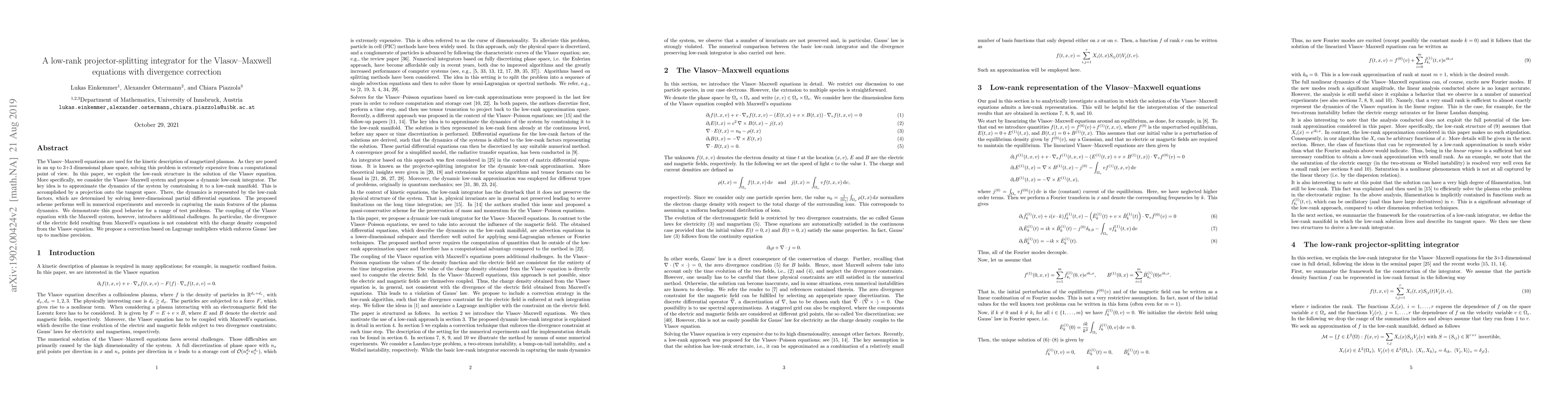 This paper proposes a low-rank projector-splitting integrator for solving the Vlasov-Maxwell equations, leveraging the low-rank structure of the Vlasov equation to reduce computational cost. It introduces a dynamic low-rank method that enforces Gauss' law using Lagrange multipliers to correct divergence issues in the electric field.