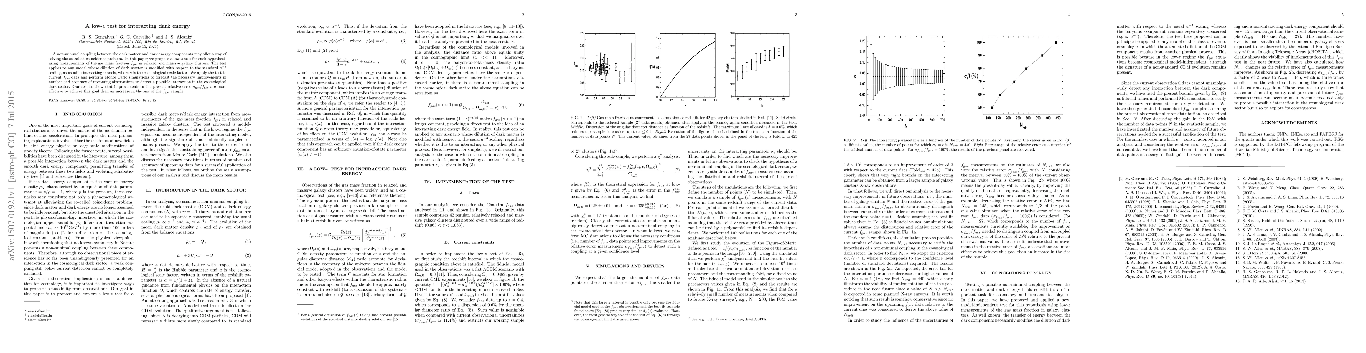 This paper proposes a low-$z$ test to investigate non-minimal coupling between dark matter and dark energy using galaxy cluster gas mass fraction measurements. The study forecasts that improvements in measurement accuracy are more effective than sample size increases for detecting potential interactions in the dark sector.
