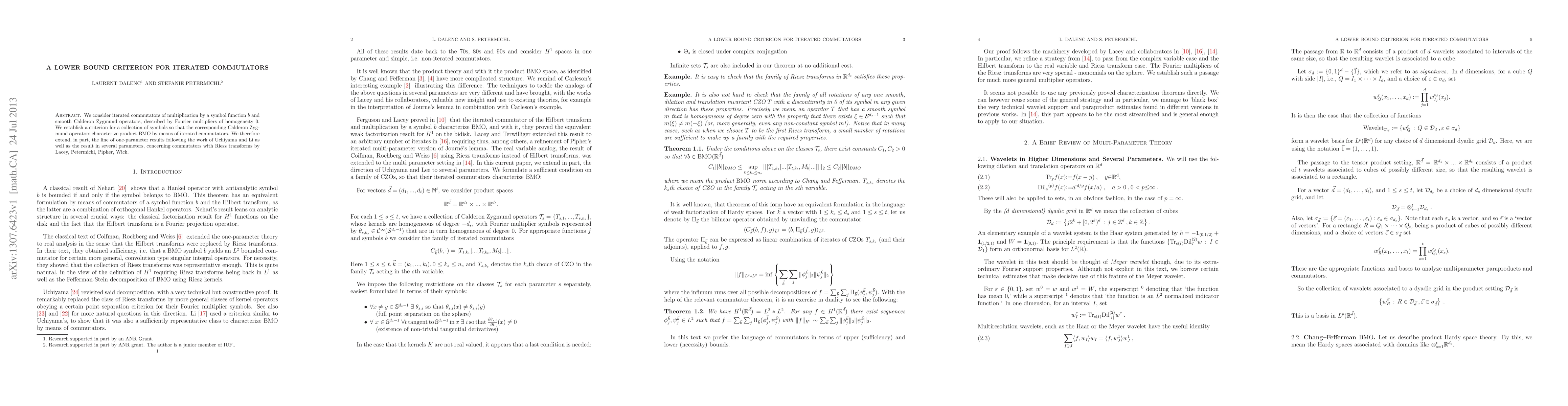 Summary: This paper establishes a criterion for classifying product BMO (bounded mean oscillation) using iterated commutators of Calderon-Zygmund operators, providing a lower bound for their behavior.