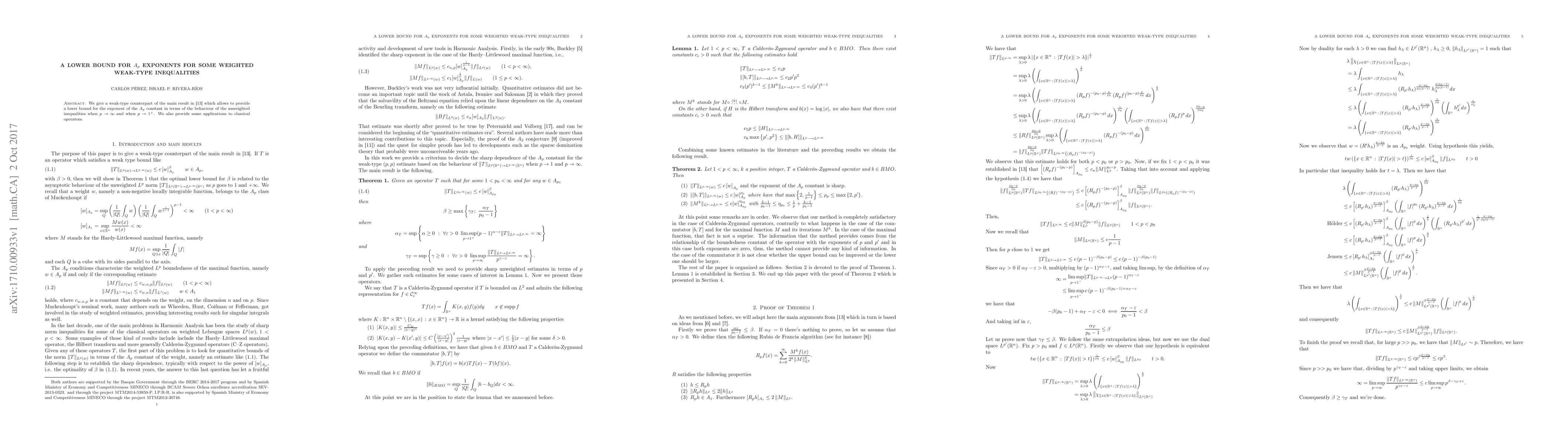 Researchers provide a lower bound for the $A_p$ exponent in weighted weak-type inequalities as p approaches infinity or 1 from the right, with implications for classical operators.