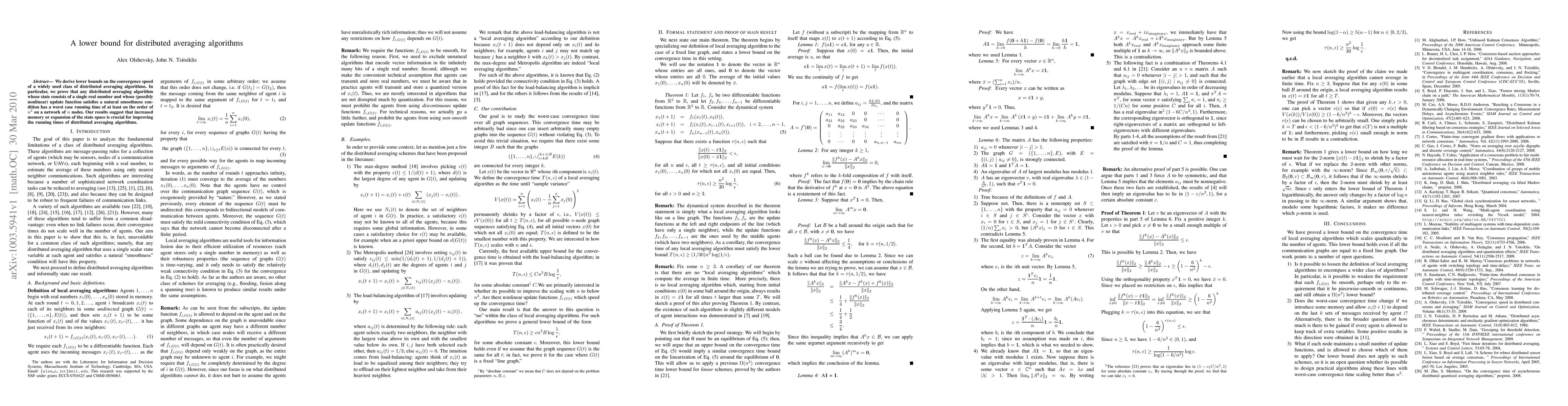 This paper establishes a lower bound of $n^2$ for the convergence speed of distributed averaging algorithms on networks of $n$ nodes, indicating that enhanced memory or expanded state space is essential for improving performance.