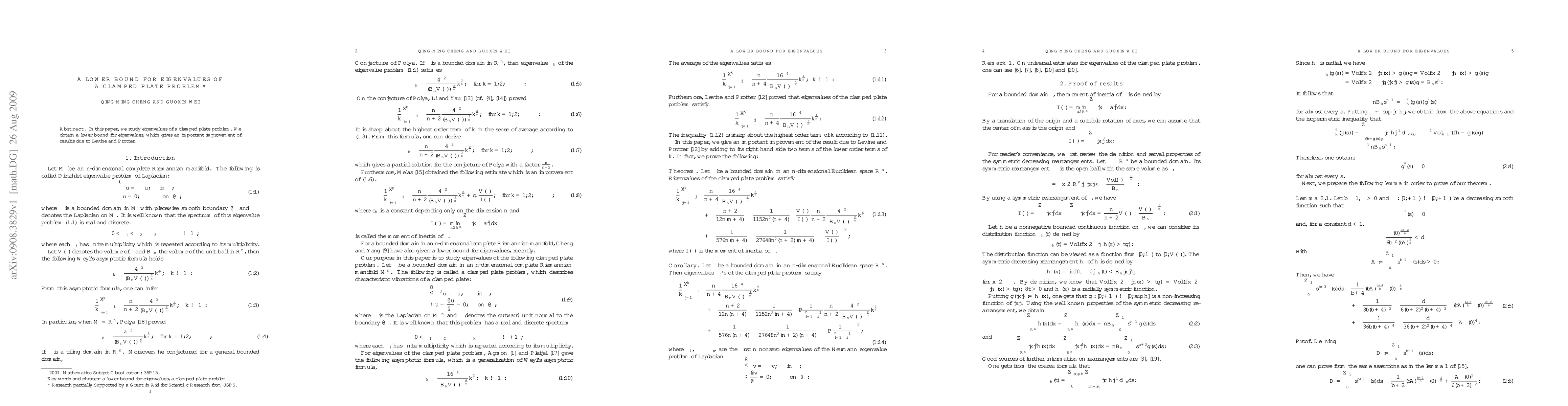Summary: This paper investigates the eigenvalues of a clamped plate problem, establishing a significant lower bound that enhances previous results by Levine and Protter. The new bound provides a more accurate understanding of the eigenvalue spectrum.
