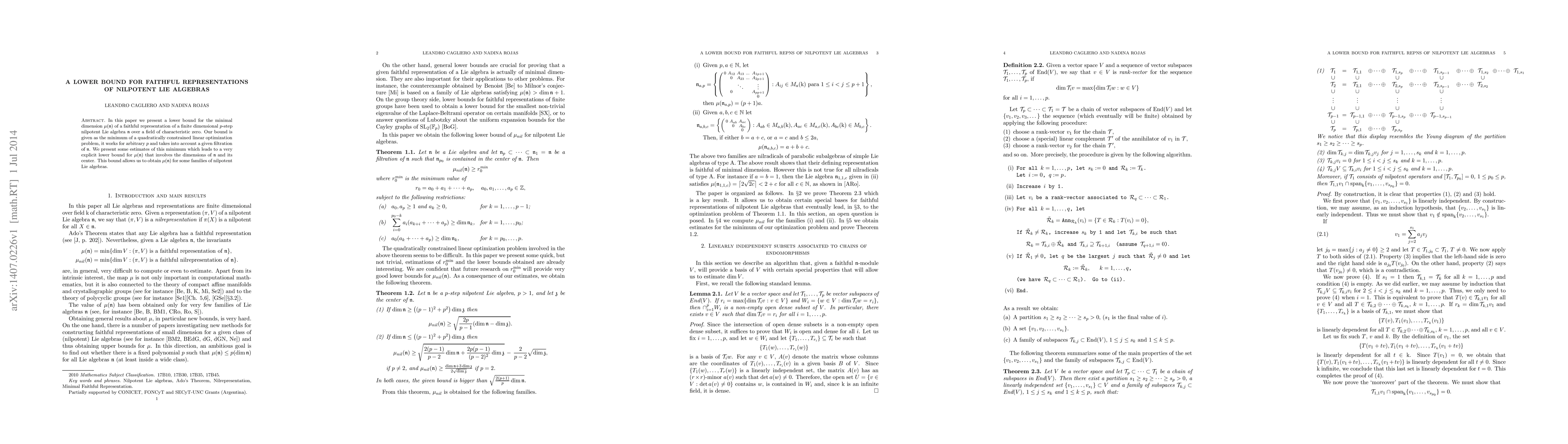 This paper establishes a lower bound for the minimal dimension of faithful representations of finite-dimensional $p$-step nilpotent Lie algebras over fields of characteristic zero, derived from a quadratically constrained linear optimization problem. The explicit lower bound involves the dimensions of the Lie algebra and its center.