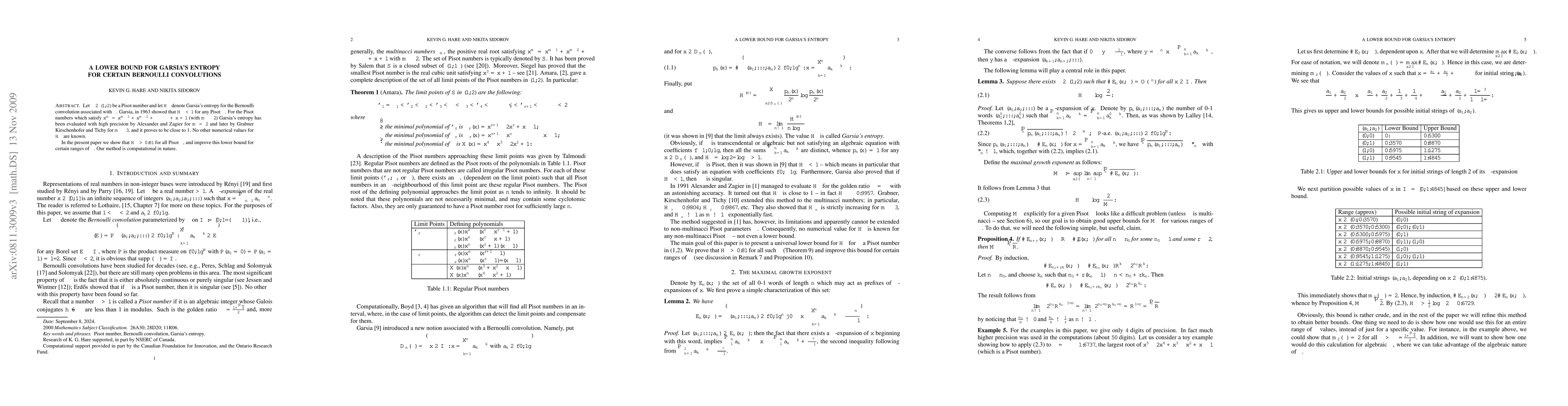 Researchers found that Garsia's entropy for certain Bernoulli convolutions is greater than 0.81 for all Pisot numbers, improving the known lower bound of around 1.