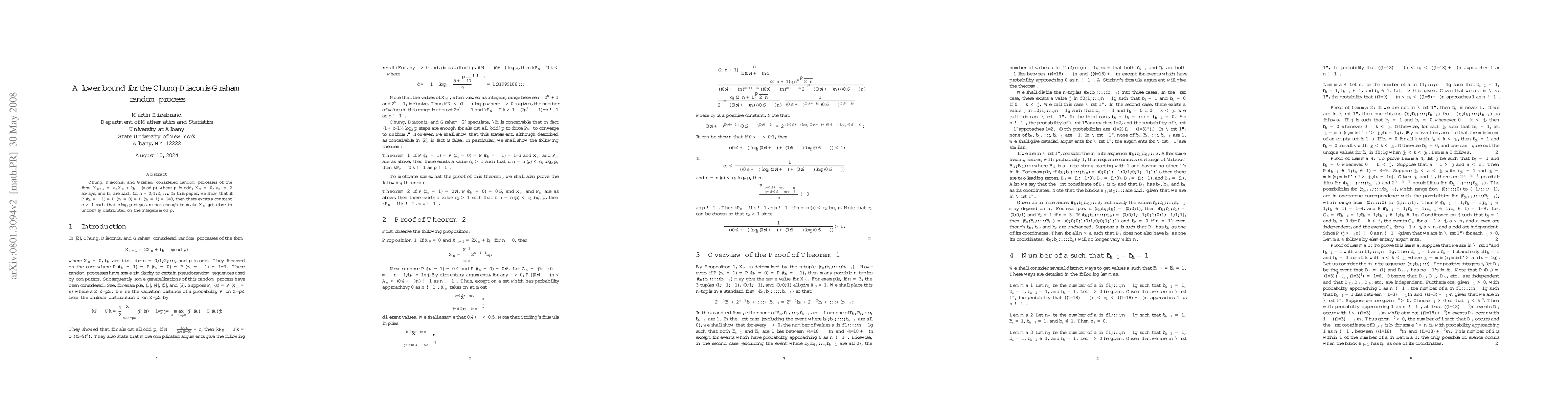 This paper establishes a lower bound for the Chung-Diaconis-Graham random process, proving that at least c log₂ p steps are required for the sequence to become uniformly distributed, where c is a constant greater than 1, under specific conditions on the independent and identically distributed random variables b_n.