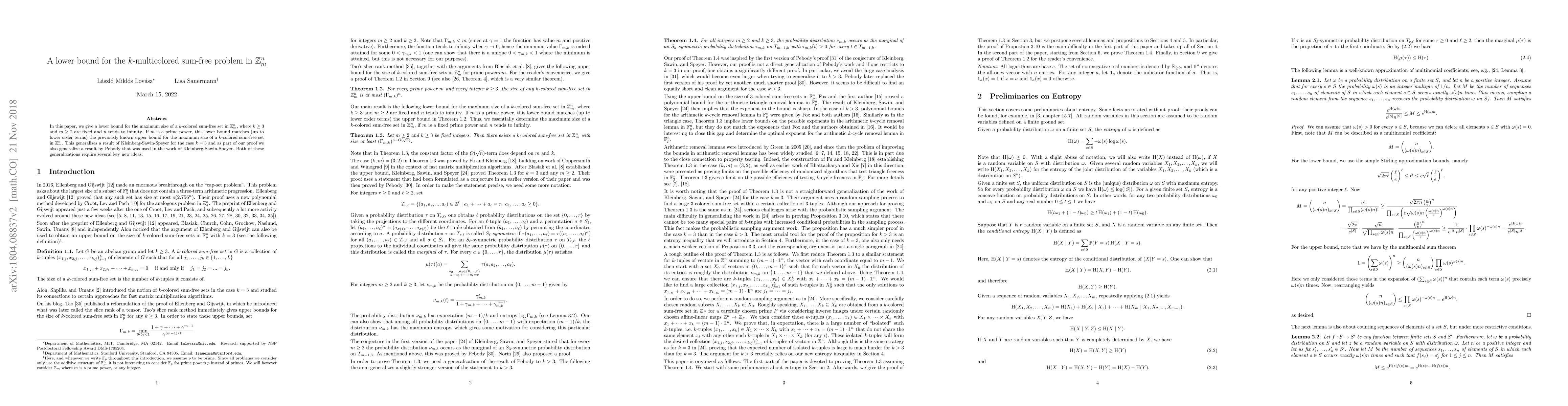 This paper establishes a lower bound for the size of a $k$-colored sum-free set in $\mathbb{Z}_m^n$ as $n$ approaches infinity, matching the previously known upper bound when $m$ is a prime power. It generalizes results for $k=3$ and incorporates new ideas to extend Pebody's work.