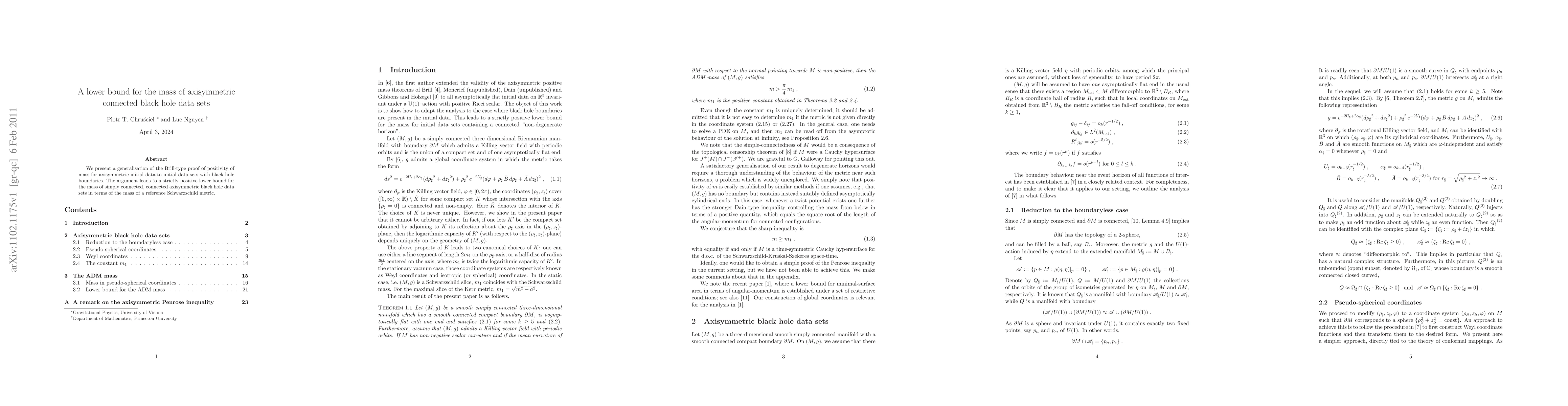 We present a generalisation of the Brill-type proof of positivity of mass for axisymmetric initial data to initial data sets with black hole boundaries. The argument leads to a strictly positive lower bound for the mass of simply connected, connected axisymmetric black hole data sets in terms of the mass of a reference Schwarzschild metric.