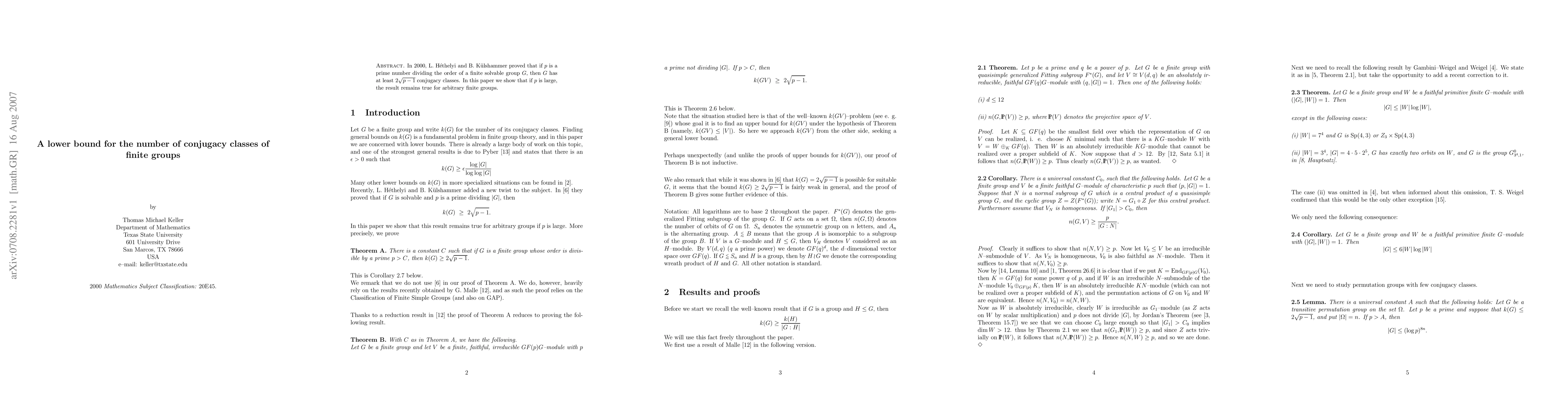 This paper extends the result by Héthelyi and Külshammer, proving that for large prime $p$ dividing the order of any finite group $G$, $G$ has at least $2\sqrt{p-1}$ conjugacy classes, not just solvable groups.
