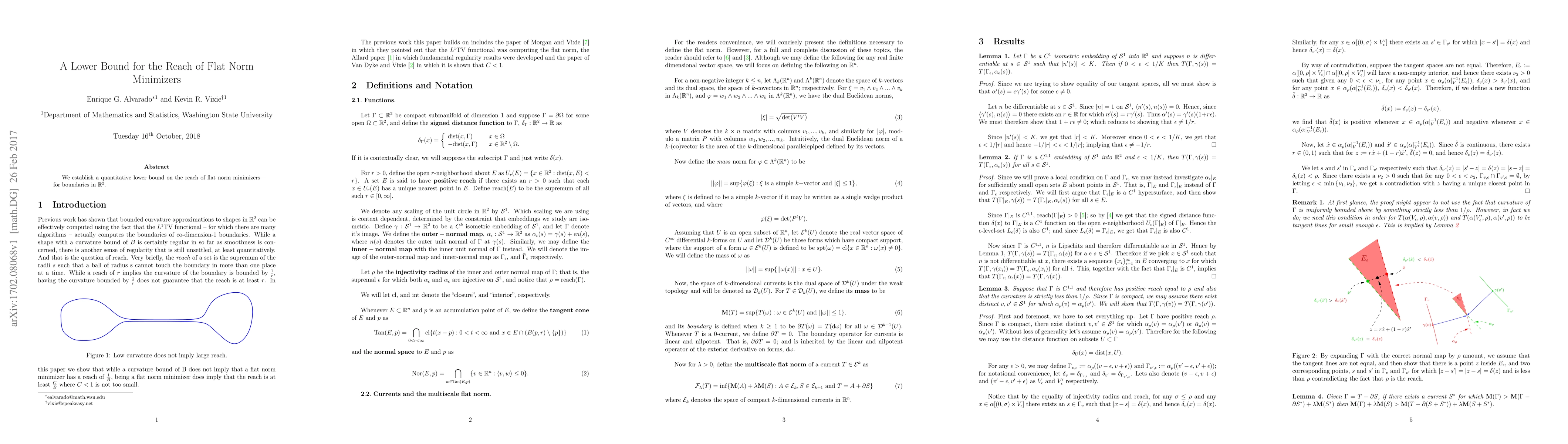We establish a quantitative lower bound on the reach of flat norm minimizers for boundaries in $\mathbb{R}^2$.