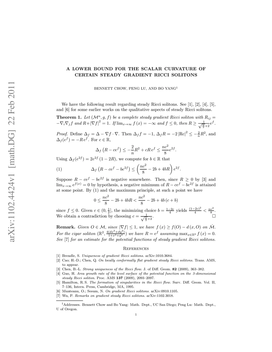 Summary: This paper establishes a lower bound for the scalar curvature of specific steady gradient Ricci solitons, contributing to the understanding of their geometric properties. The result is significant for further studies in the field of Ricci flows and solitons.