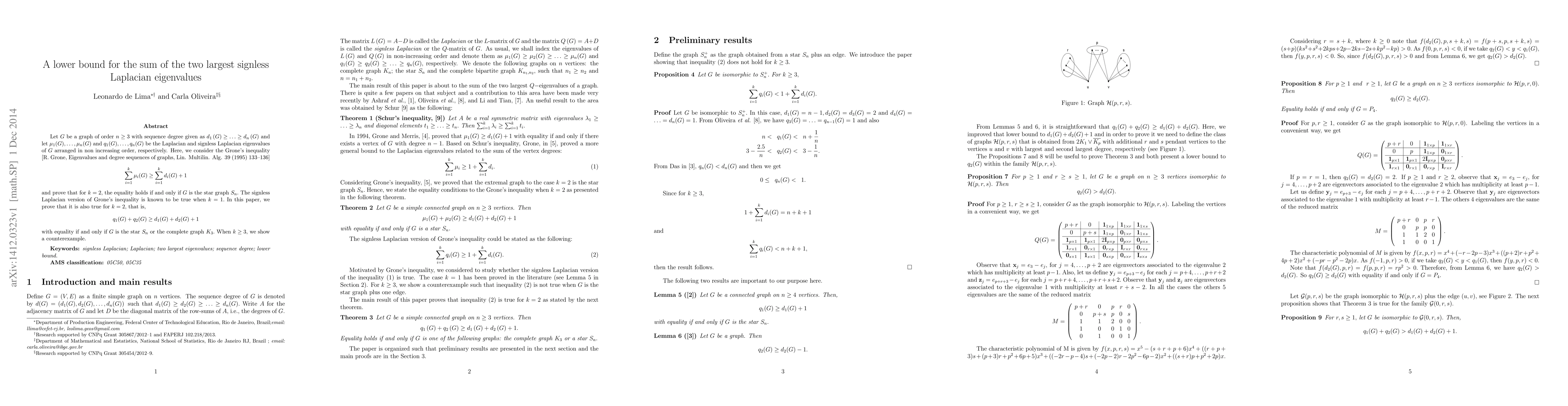 Let $G$ be a graph of order $n \geq 3$ with sequence degree given as $d_{1}(G) \geq ... \geq d_{n}(G)$ and let $\mu_1(G),..., \mu_n(G)$ and $q_1(G), ..., q_{n}(G)$ be the Laplacian and signless Laplacian eigenvalues of $G$ arranged in non increasing order, respectively. Here, we consider the Grone's inequality [R. Grone, Eigenvalues and degree sequences of graphs, Lin. Multilin. Alg. 39 (1995) 133--136] $$ \sum_{i=1}^{k} \mu_{i}(G) \geq \sum_{i=1}^{k} d_{i}(G)+1$$ and prove that for $k=2$, the equality holds if and only if $G$ is the star graph $S_{n}.$ The signless Laplacian version of Grone's inequality is known to be true when $k=1.$ In this paper, we prove that it is also true for $k=2,$ that is, $$q_{1}(G)+q_{2}(G) \geq d_1(G)+d_2(G)+1$$ with equality if and only if $G$ is the star $S_{n}$ or the complete graph $K_{3}.$ When $k \geq 3$, we show a counterexample.