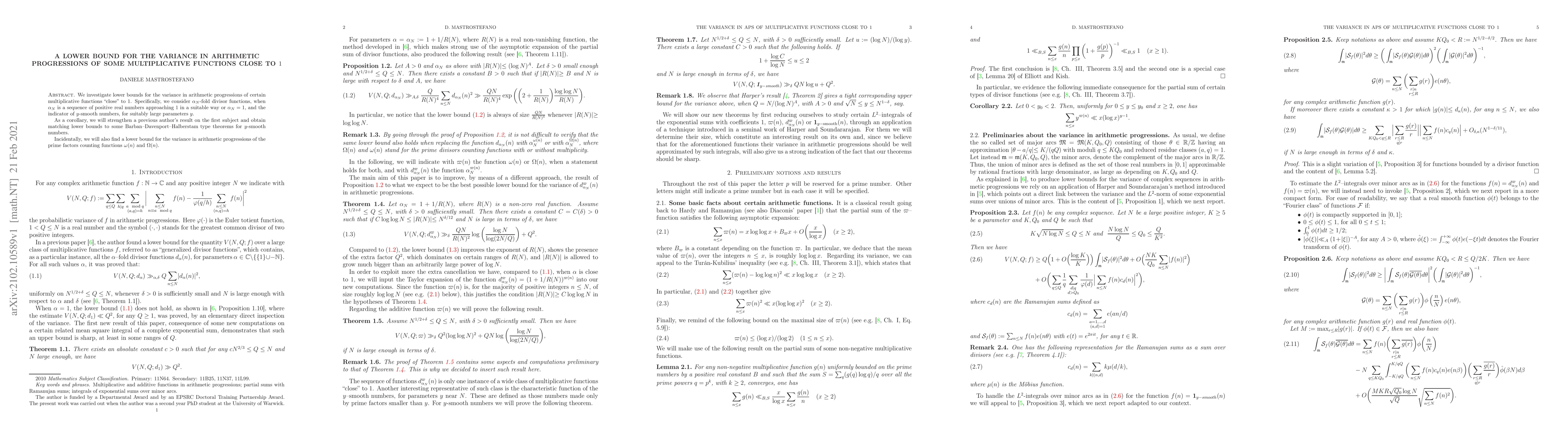 This paper establishes lower bounds for the variance in arithmetic progressions of certain multiplicative functions close to 1, including $\alpha_N$-fold divisor functions and indicators of $y$-smooth numbers. It strengthens previous results and finds matching lower bounds for Barban-Davenport-Halberstam type theorems.