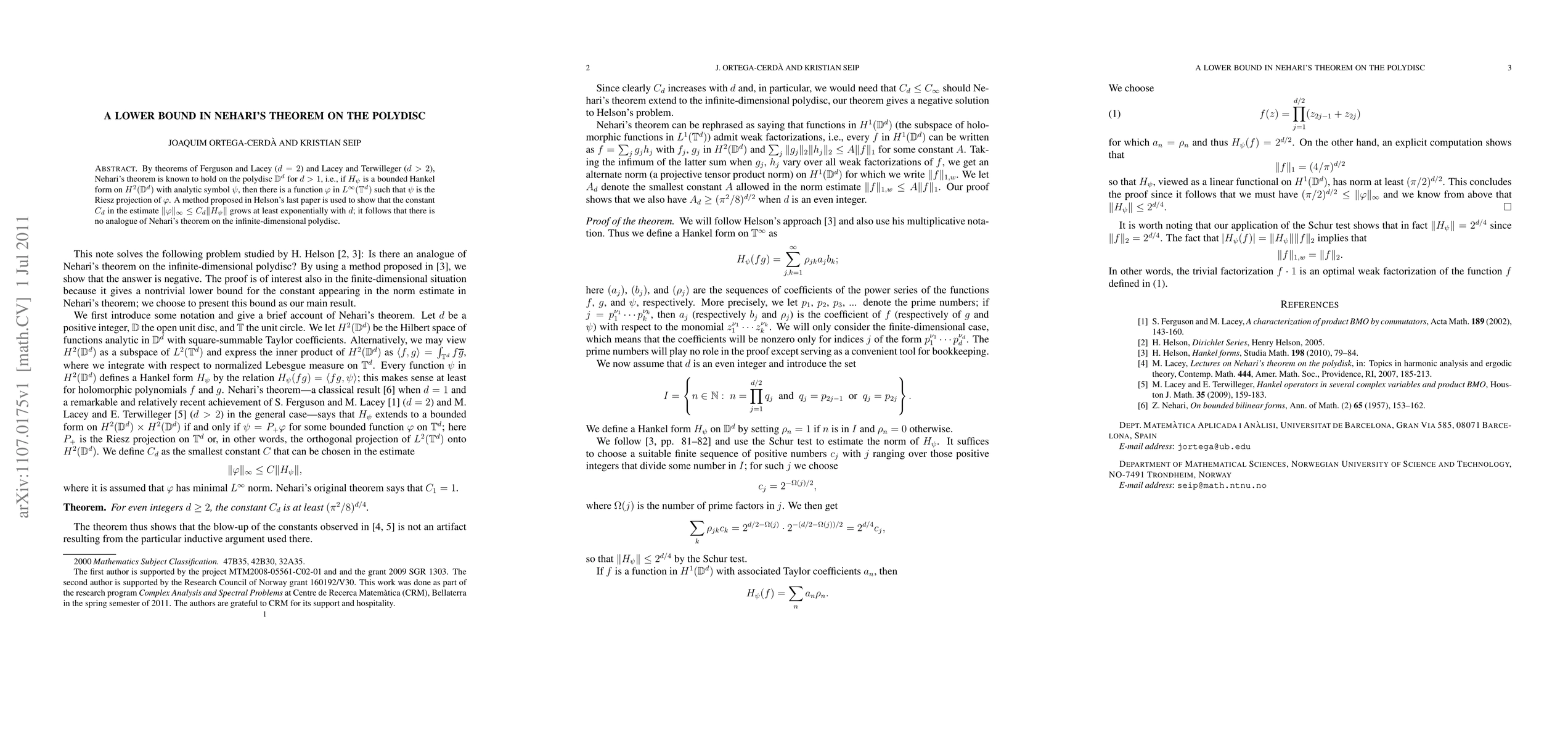 Summary: The paper demonstrates that the constant in Nehari's theorem for bounded Hankel forms on the polydisc grows exponentially with dimension d, indicating no analogue of the theorem on the infinite-dimensional polydisc. This result is achieved using methods from Helson's final work.