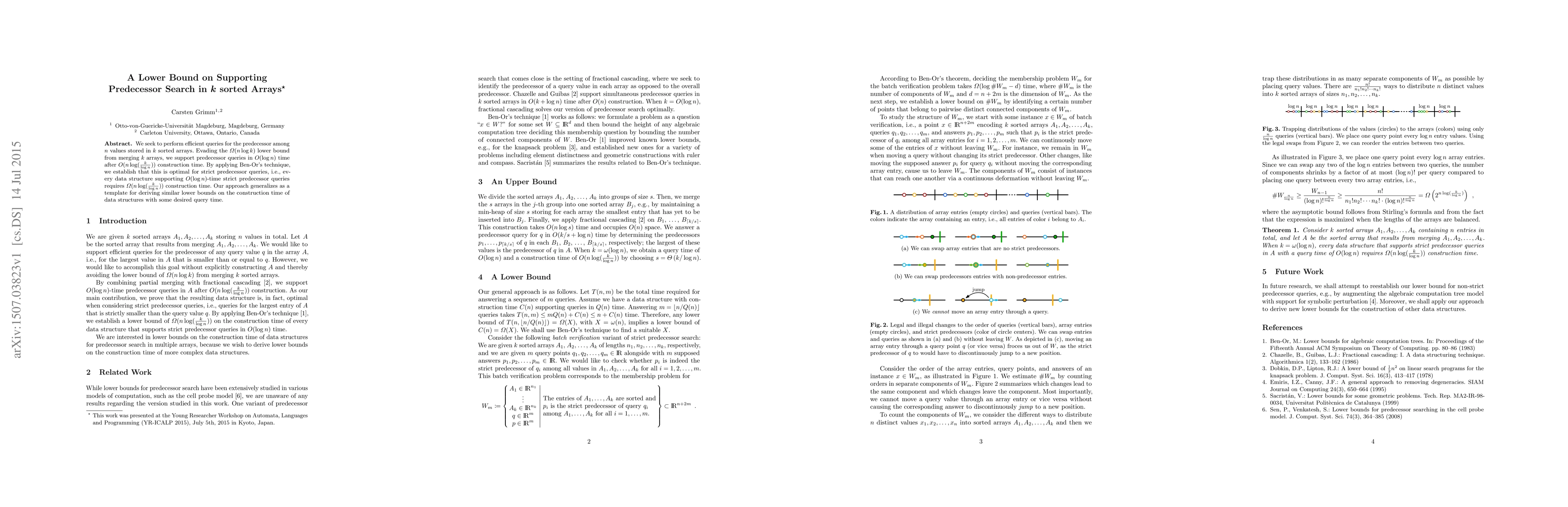 We seek to perform efficient queries for the predecessor among $n$ values stored in $k$ sorted arrays. Evading the $\Omega(n \log k)$ lower bound from merging $k$ arrays, we support predecessor queries in $O(\log n)$ time after $O(n \log(\frac{k}{\log n}))$ construction time. By applying Ben-Or's technique, we establish that this is optimal for strict predecessor queries, i.e., every data structure supporting $O(\log n)$-time strict predecessor queries requires $\Omega(n \log(\frac{k}{\log n}))$ construction time. Our approach generalizes as a template for deriving similar lower bounds on the construction time of data structures with some desired query time.