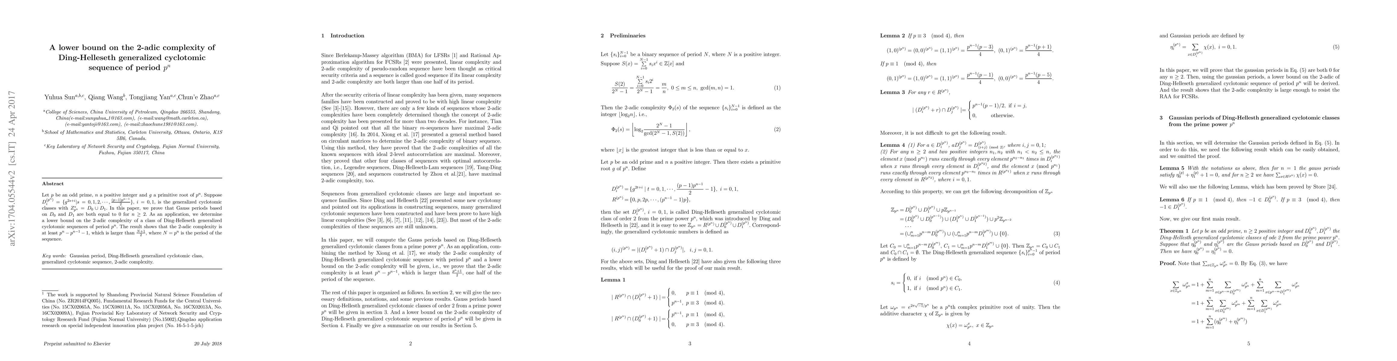 Let $p$ be an odd prime, $n$ a positive integer and $g$ a primitive root of $p^n$. Suppose $D_i^{(p^n)}=\{g^{2s+i}|s=0,1,2,\cdots,\frac{(p-1)p^{n-1}}{2}\}$, $i=0,1$, is the generalized cyclotomic classes with $Z_{p^n}^{\ast}=D_0\cup D_1$. In this paper, we prove that Gauss periods based on $D_0$ and $D_1$ are both equal to 0 for $n\geq2$. As an application, we determine a lower bound on the 2-adic complexity of a class of Ding-Helleseth generalized cyclotomic sequences of period $p^n$. The result shows that the 2-adic complexity is at least $p^n-p^{n-1}-1$, which is larger than $\frac{N+1}{2}$, where $N=p^n$ is the period of the sequence.