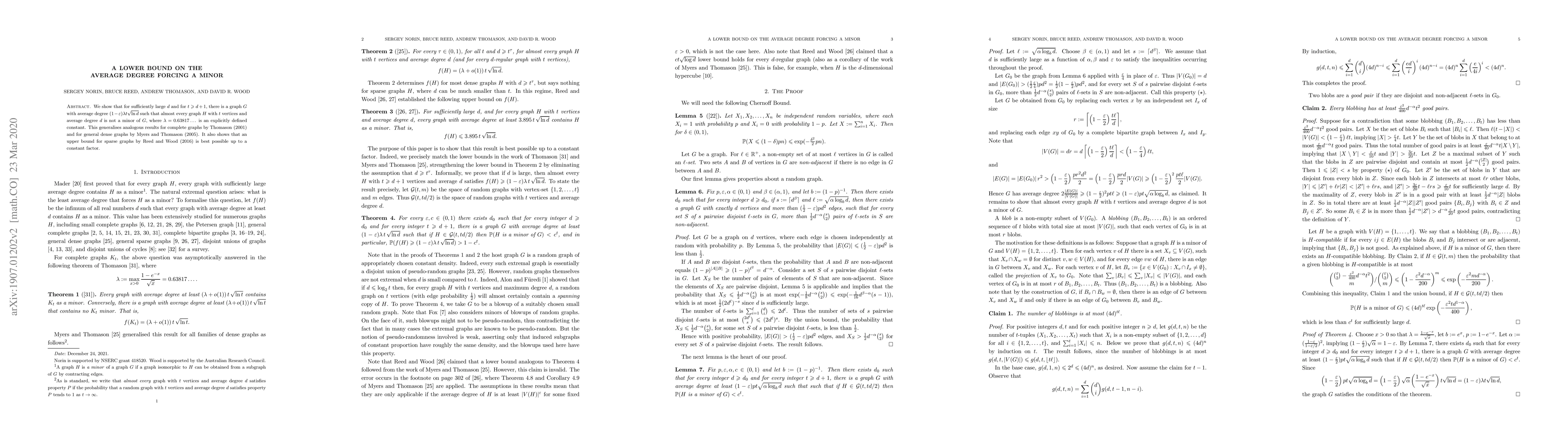 Researchers found a lower bound on average degree for a graph to prevent certain graphs from being minors of it. For sufficiently large d and t vertices, they showed that almost every graph with average degree d is not a minor of such a graph.