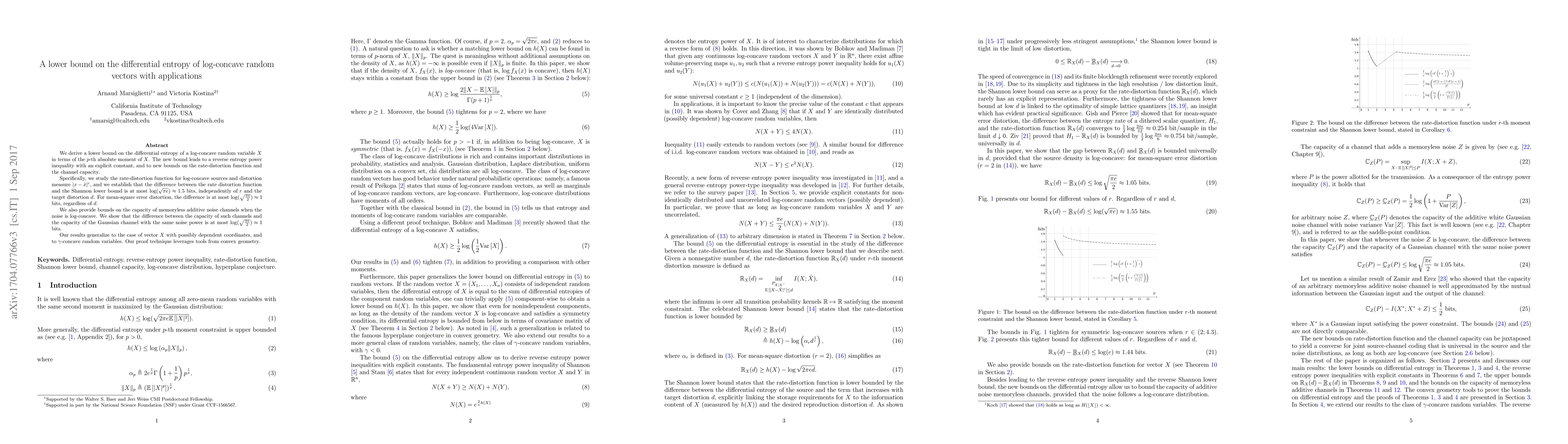 This paper establishes a lower bound on the differential entropy of log-concave random vectors in terms of their $p$-th absolute moments, leading to new bounds on rate-distortion functions and channel capacities. The results show that the difference between the rate-distortion function and Shannon's lower bound is at most 1.5 bits for general distortion measures and 1 bit for mean-square error distortion.