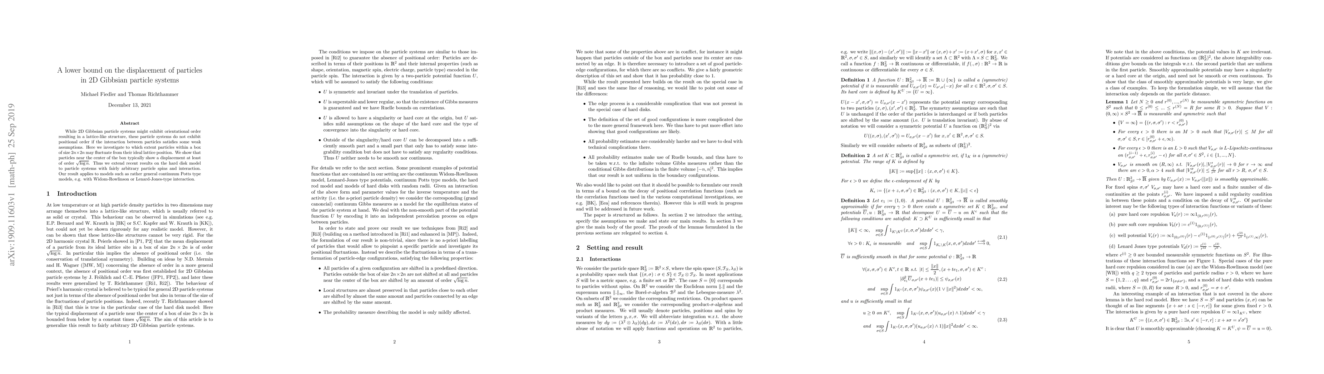 Particles in 2D Gibbsian particle systems typically deviate from their ideal lattice position by at least sqrt(log n), even with arbitrary interaction and spin properties.